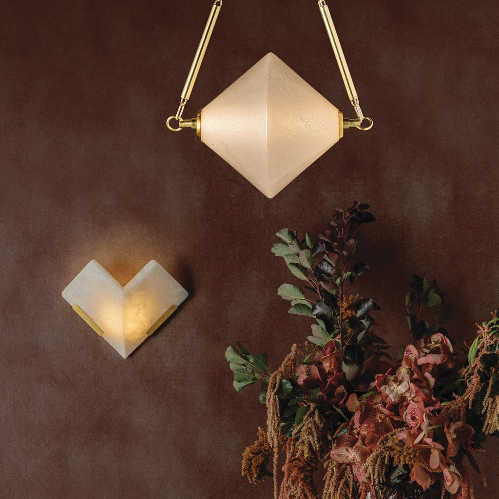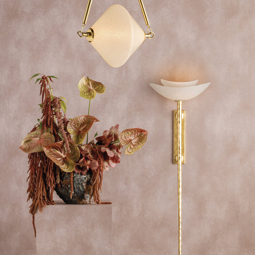 Corbett Lighting Solara captures the quiet poetry of a solar system in motion; celestial, geometric, and gently luminous. Inspired by constellations, each cloud seedy glass shade glows like a radiant star, suspended in orbit by slender rods finished in Vintage Patina Brass. The 3- and 5-light chandeliers feature diamond-shaped shades that create dimensionality from every perspective, while the single-light pendant drops like a sculptural earring. The result is lighting that feels both architectural and romantic. They are designed not just to illuminate, but to bring a sense of wonder to the everyday.