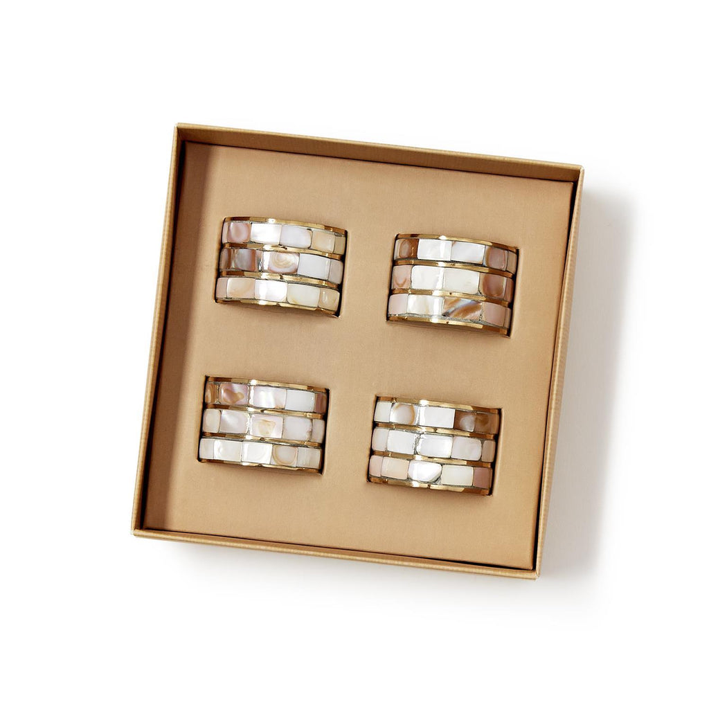 Elevate your dining experience with our exquisite Set of 4 Mother of Pearl Napkin Ring Holders. Crafted with meticulous attention to detail, these napkin rings combine the timeless elegance of mother of pearl with the sophistication of brass accents. Each set comes beautifully presented in a sleek gift box, making them an ideal choice for both personal use and thoughtful gifting.