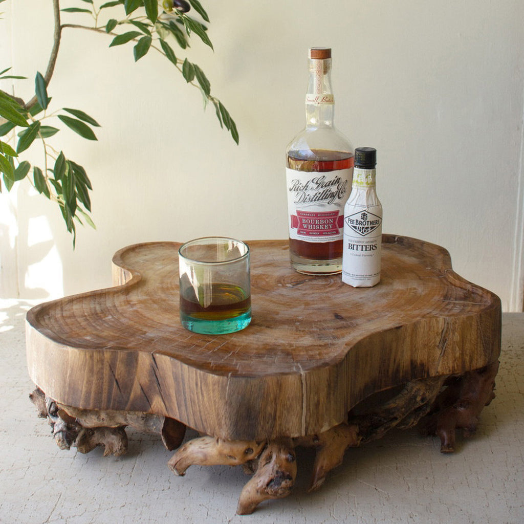 Elevate your favorite beverages. This waxed mulberry root and willow wood serving tray works as a minibar. Put out nibbles for the crew or savor your charcuterie.
