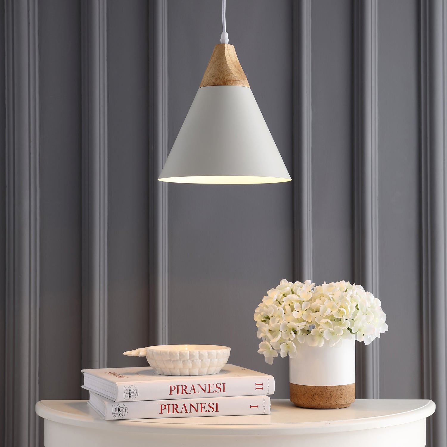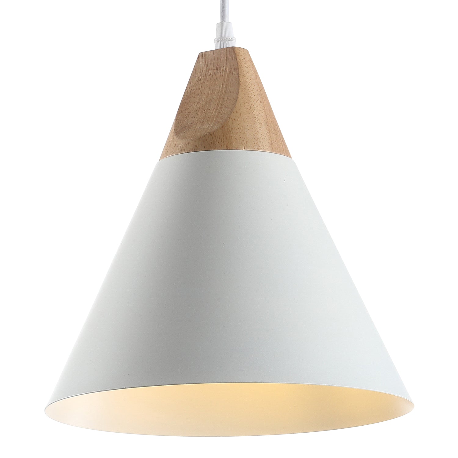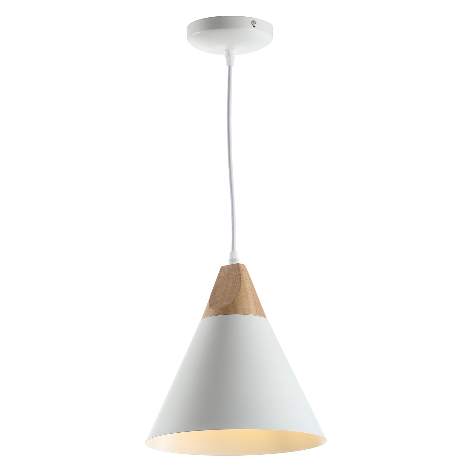 This minimalist Munford pendant will illuminate any modern bedroom, living room, or kitchen. It's cool dark gray or white shade, paired with a light brown wooden finish, adds a clean, contemporary finish to any décor.