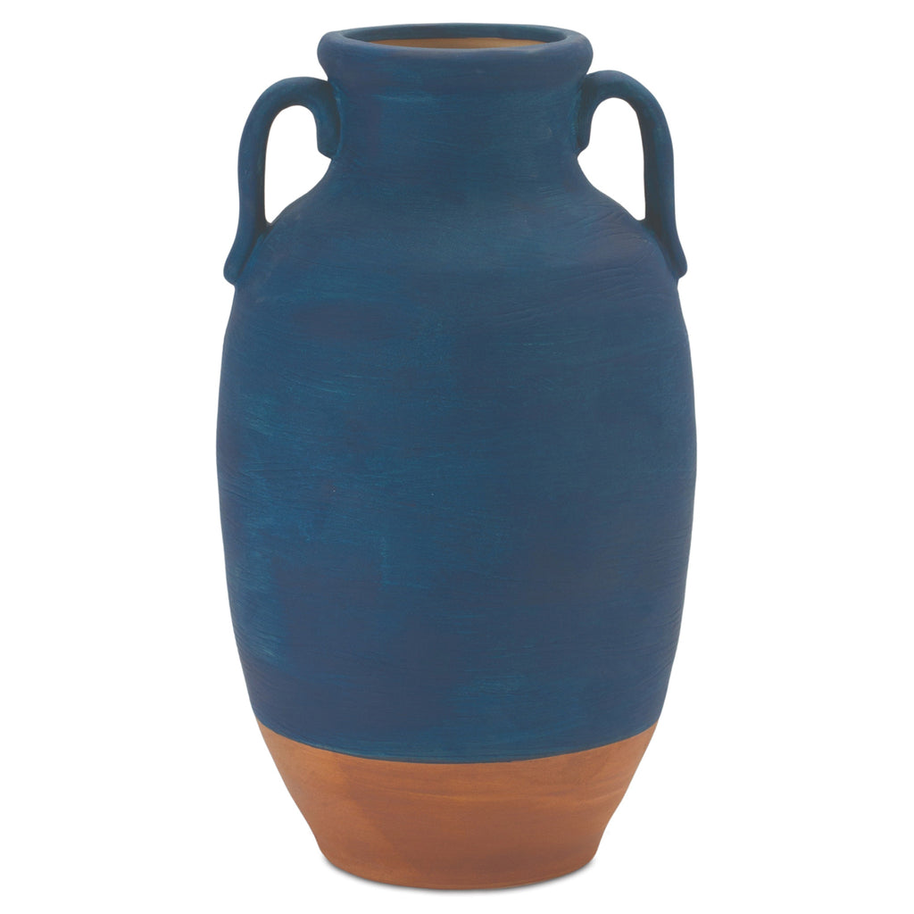 Instantly upgrade your home decor with this elegant Ceramic Urn Vase. Perfect for displaying your freshly picked garden flowers, this vase features a traditional urn shape with handle accents, and comes in cool navy blue tones with natural terra cotta accent. Crafted from quality ceramic clay, it'll add a touch of class and sophistication to any room in your home. Get the Ceramic Urn Vase today and watch your home transform!
