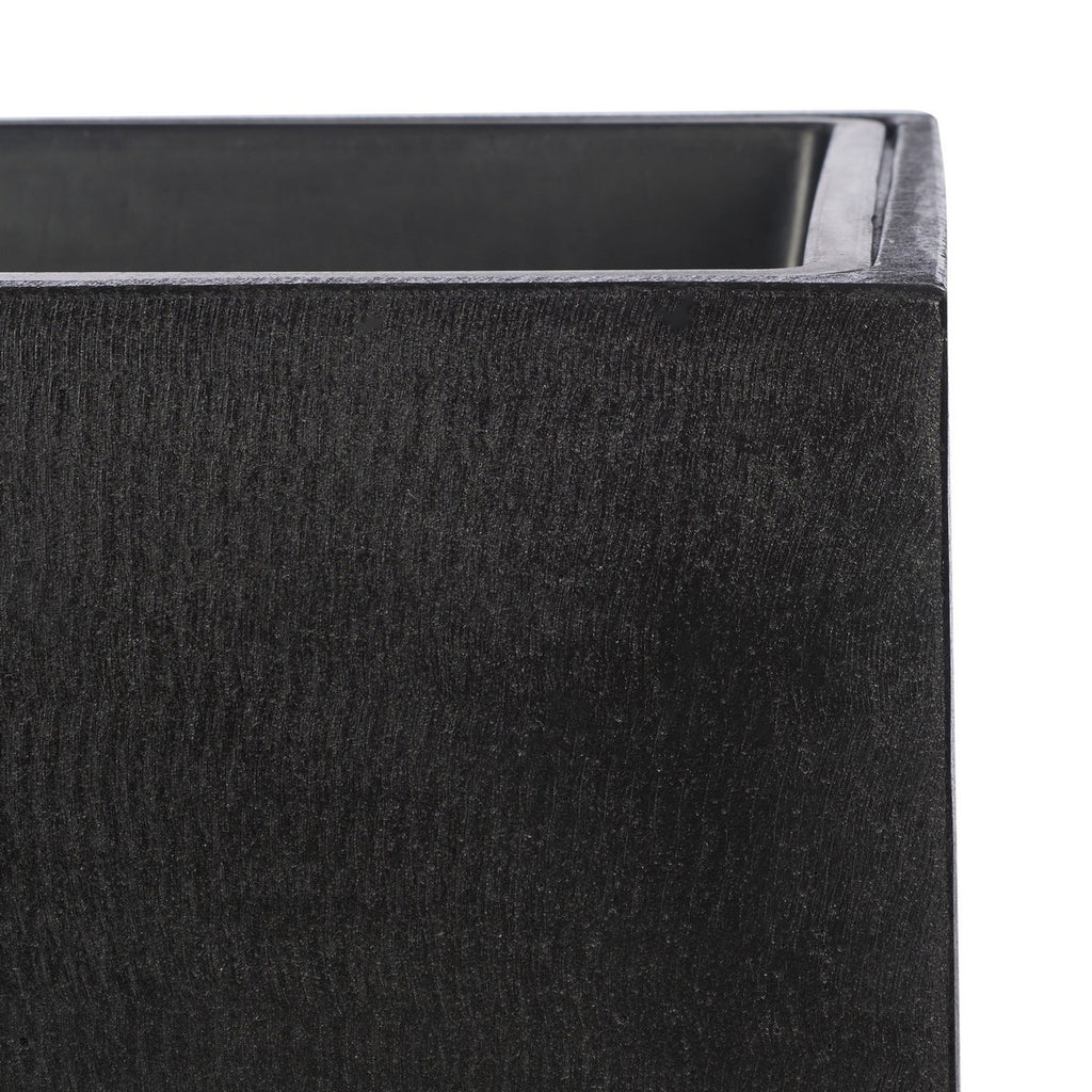 The Nicholas Indoor/Outdoor Planter embodies minimalism at its finest, bringing sleek modern chic to any outdoor living space. Nicholas' cubist black stone frame forms a striking juxtaposition against the flowing vines of plants and flowers.