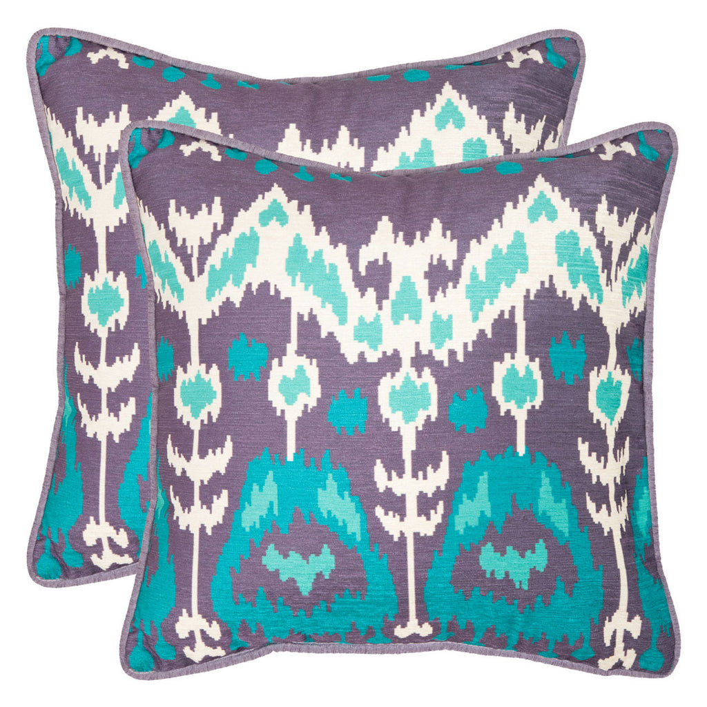 A mélange of design influences are represented in this dramatic pillow, with motif that recalls Middle Eastern and Native American symbols in au courant fashion colors. Printed by master textile artisans on polyester fabric, this stylish set pillows comes with a hidden zipper for easy-access care and no-fuss cleaning. Sold as set of two.