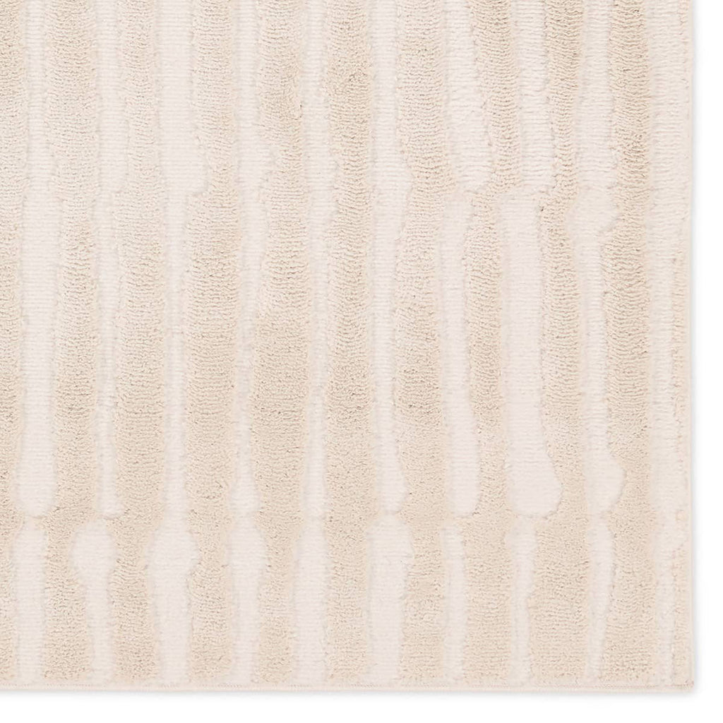 Modern geometrics and a lustrous sheen define the Calix Collection by Nikki Chu. The soft, plush pile features high and low areas for added texture that delights underfoot. The Terza design showcases a cream, abstract stripe pattern. Polypropylene and polyester blend provides natural stain resistance and low maintenance care. This rug best suits medium-traffic spaces of the home, such as living rooms, bedrooms, and dining rooms.