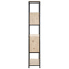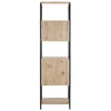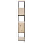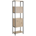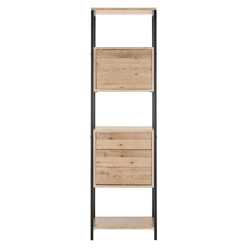 Elegant and statuesque, this mid-century étagère brings a retro blend of sleek drawers and open storage to the living room or study. Designed with black iron and a natural oak finish, designers also use it in the dining room for easy storage and display.