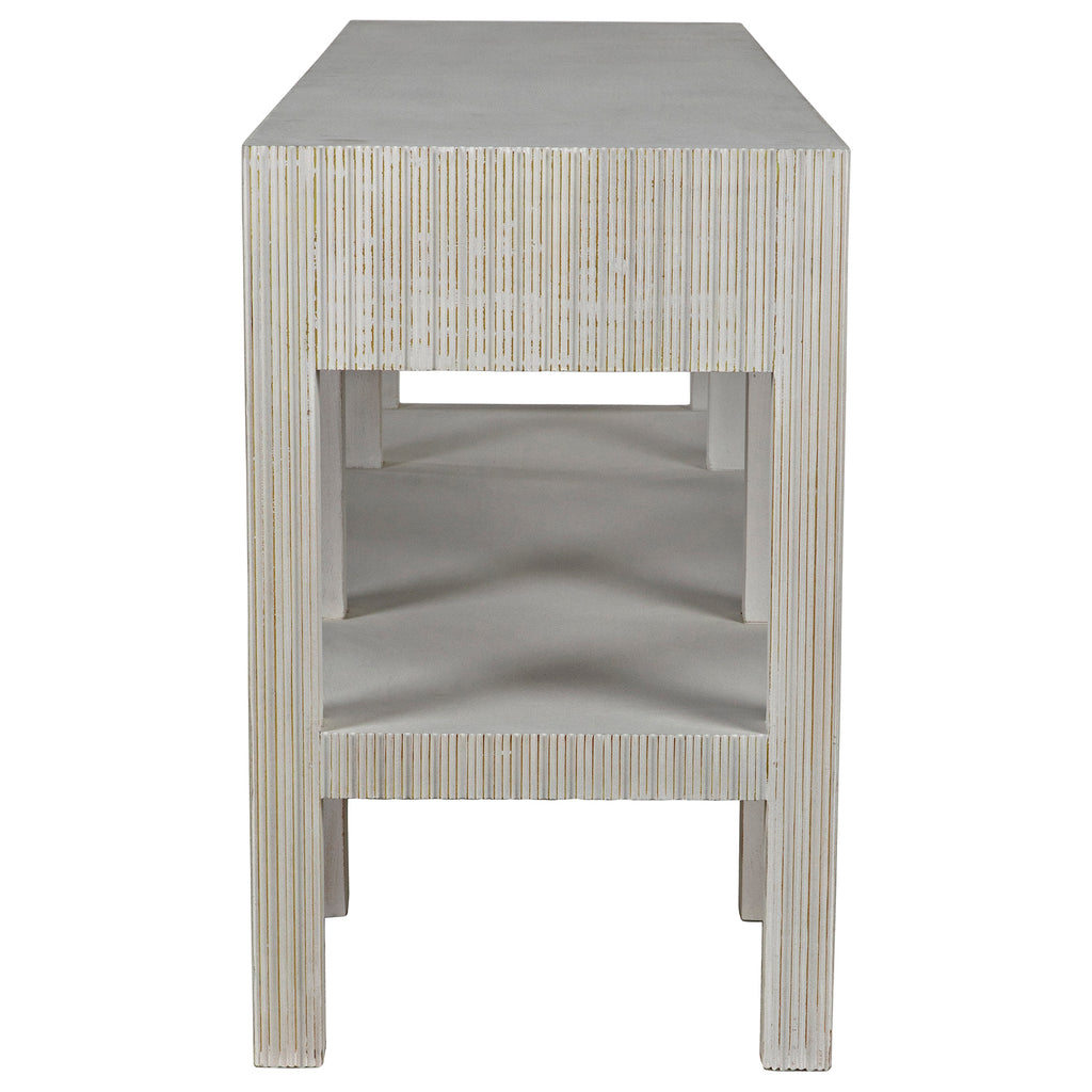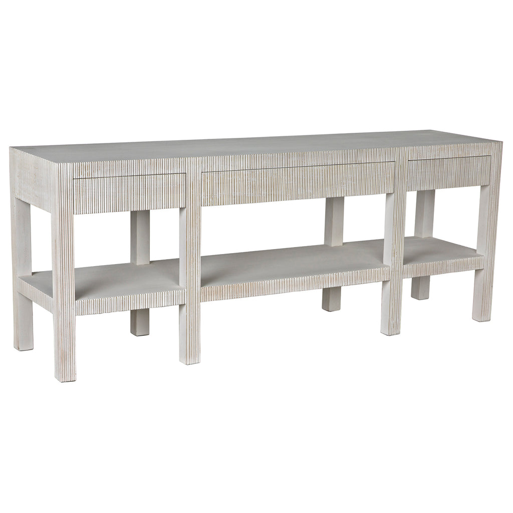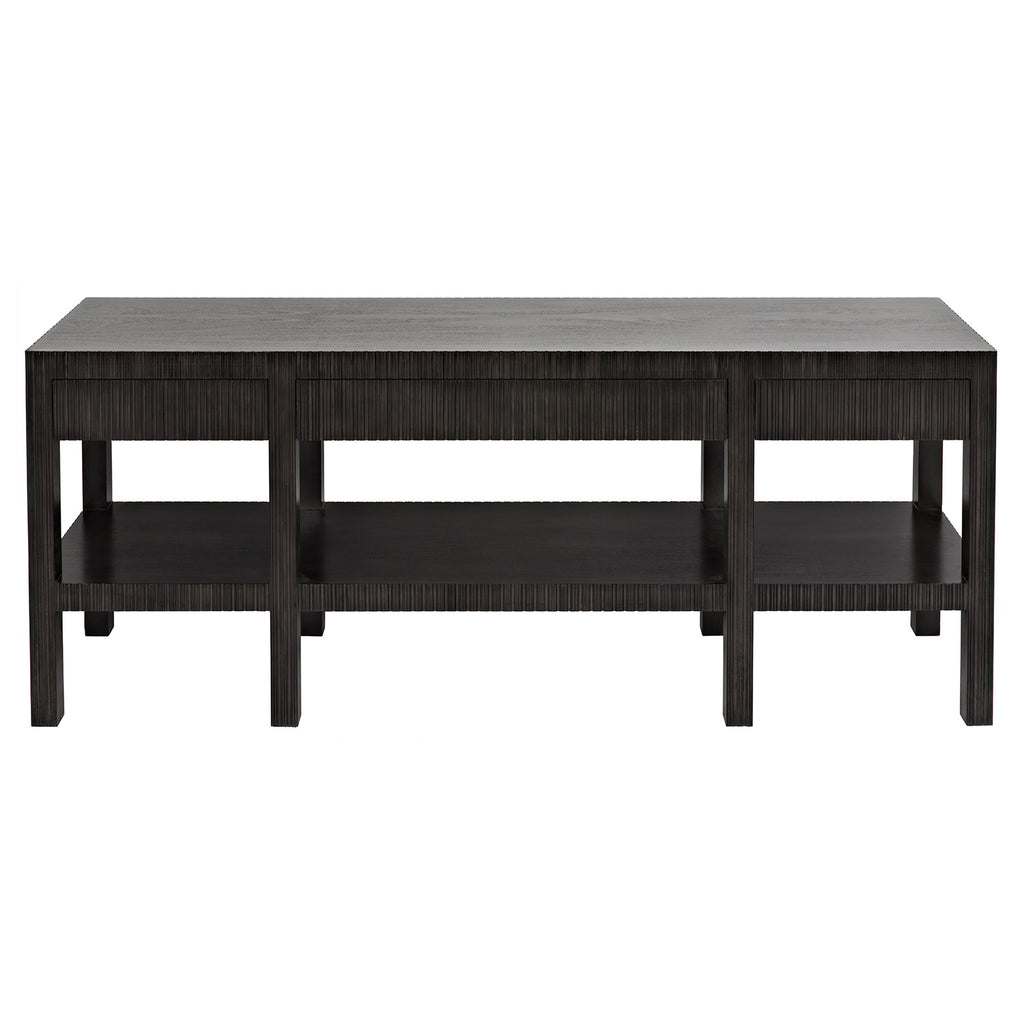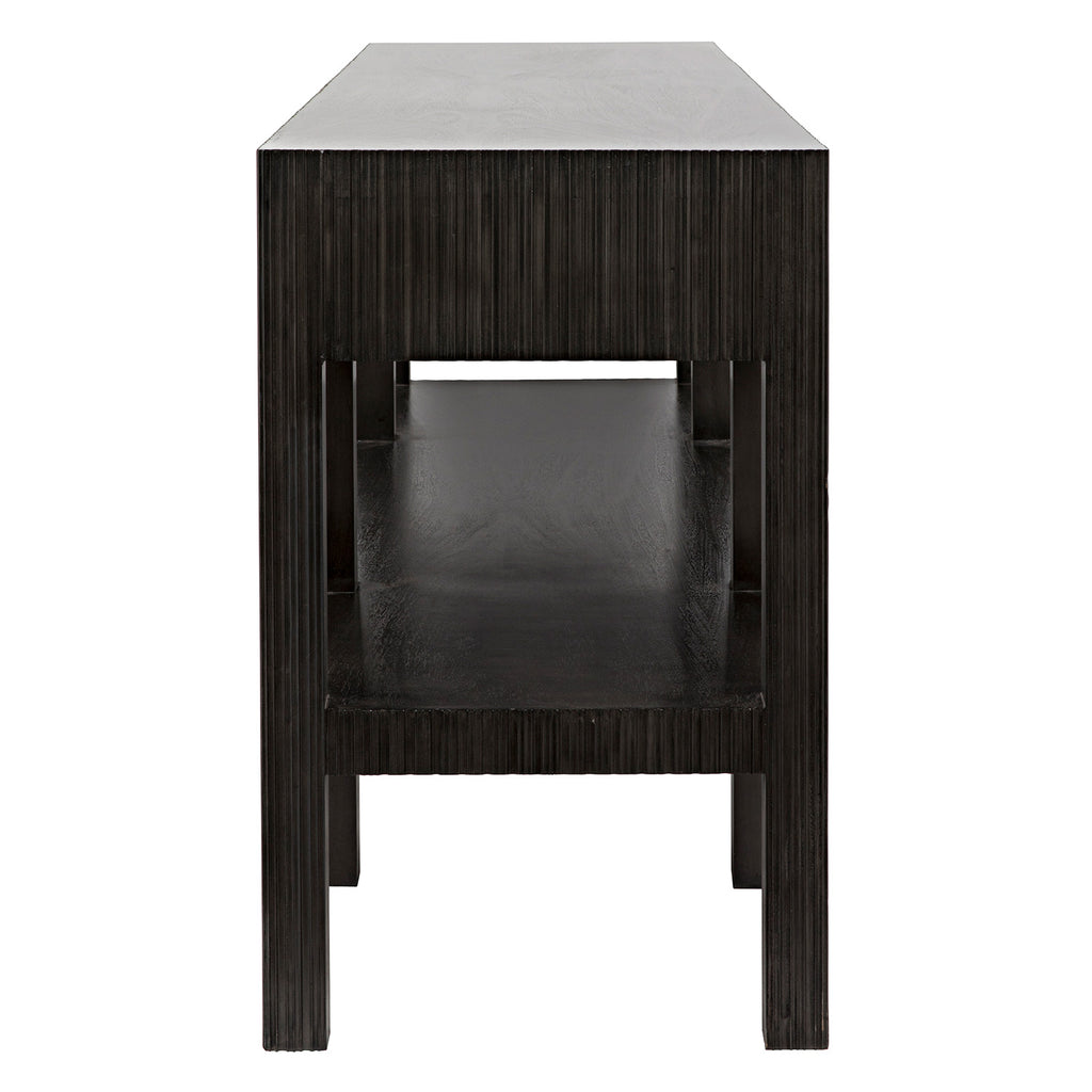 An excellent addition to a foyer or hallway, this Noir console table delights with contemporary flair. Simple yet chic, this functional furnishing adds dimensional depth to any space. Elegance interpreted, the solid mahogany Noir Conrad console is distinguished by its clean lines, expert hand-craftsmanship, and the pale finish that enhances the natural grain of its hardwood.