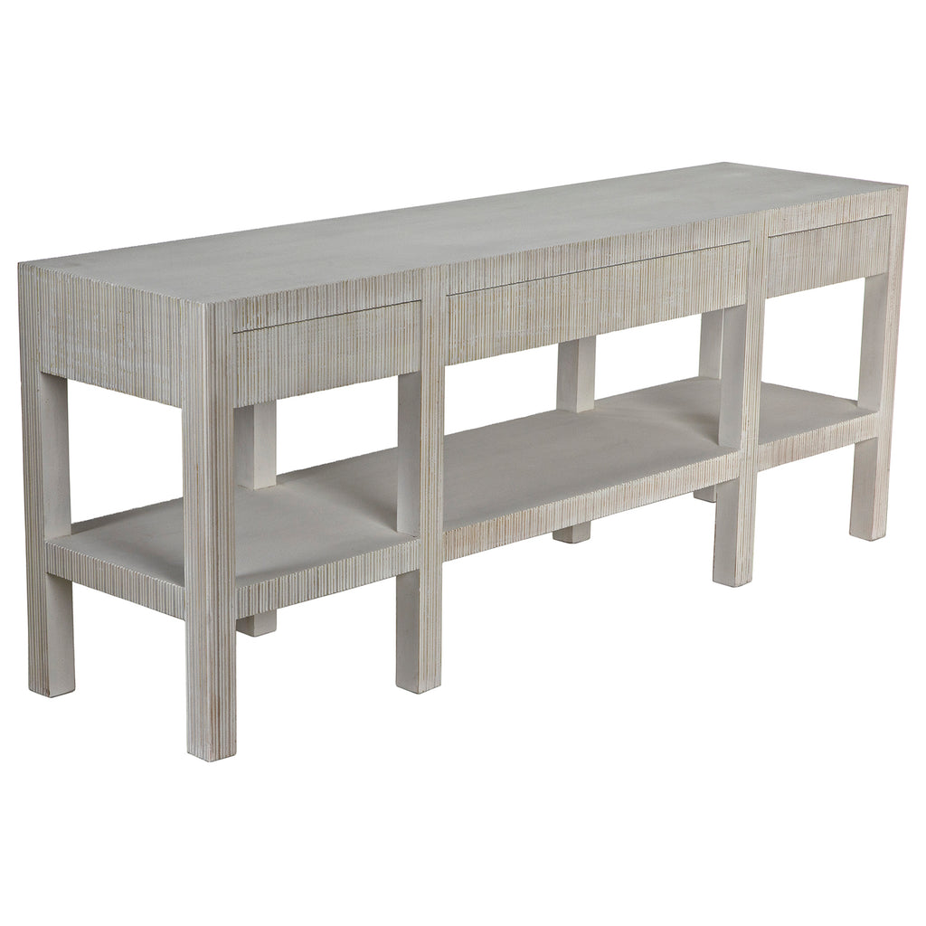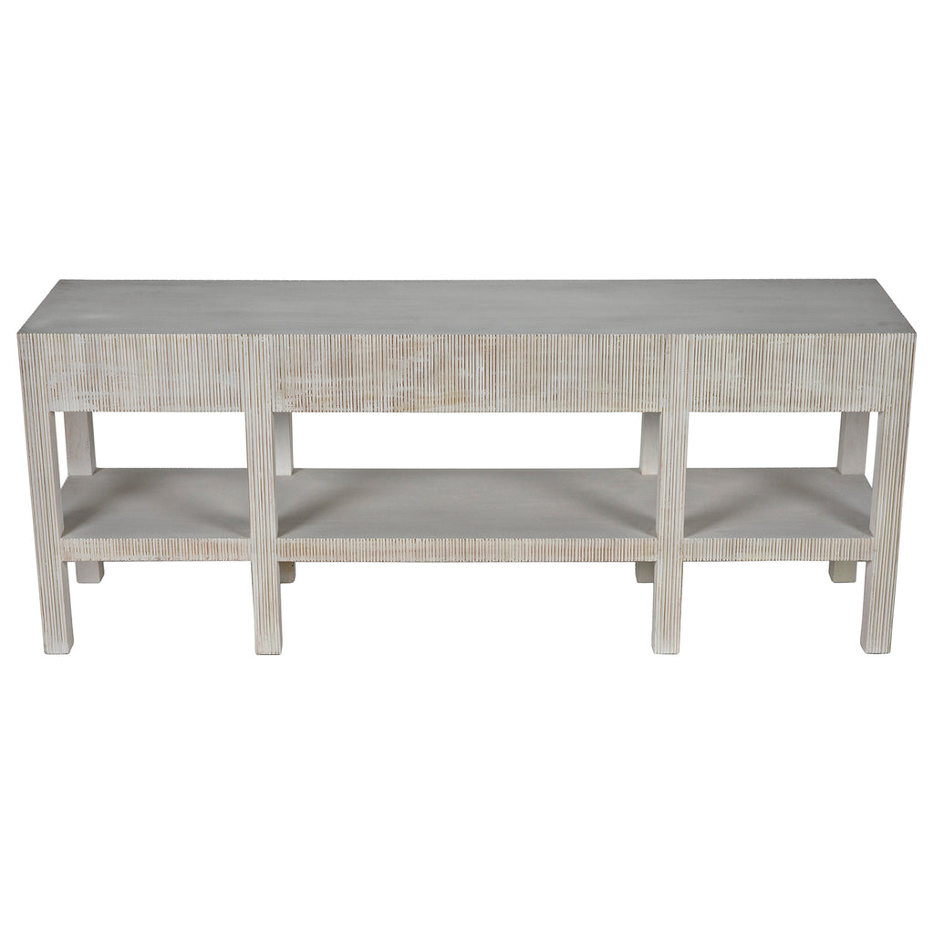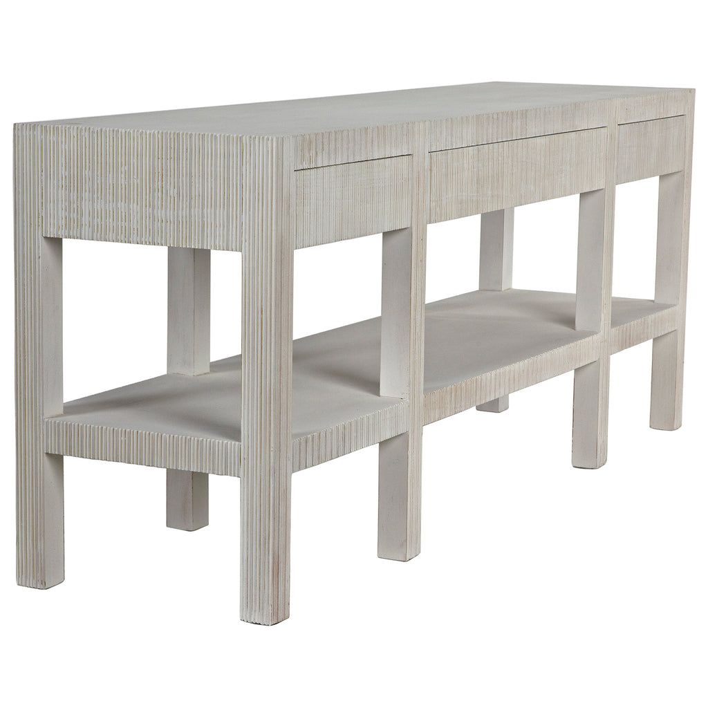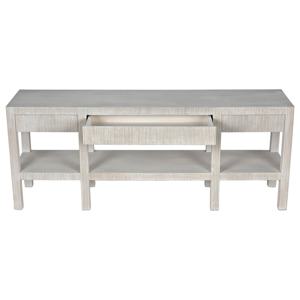 An excellent addition to a foyer or hallway, this Noir console table delights with contemporary flair. Simple yet chic, this functional furnishing adds dimensional depth to any space. Elegance interpreted, the solid mahogany Noir Conrad console is distinguished by its clean lines, expert hand-craftsmanship, and the pale finish that enhances the natural grain of its hardwood.