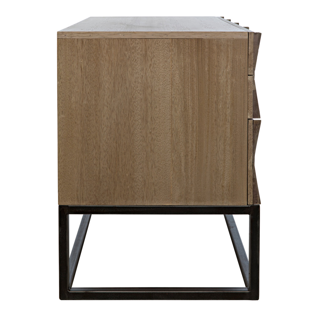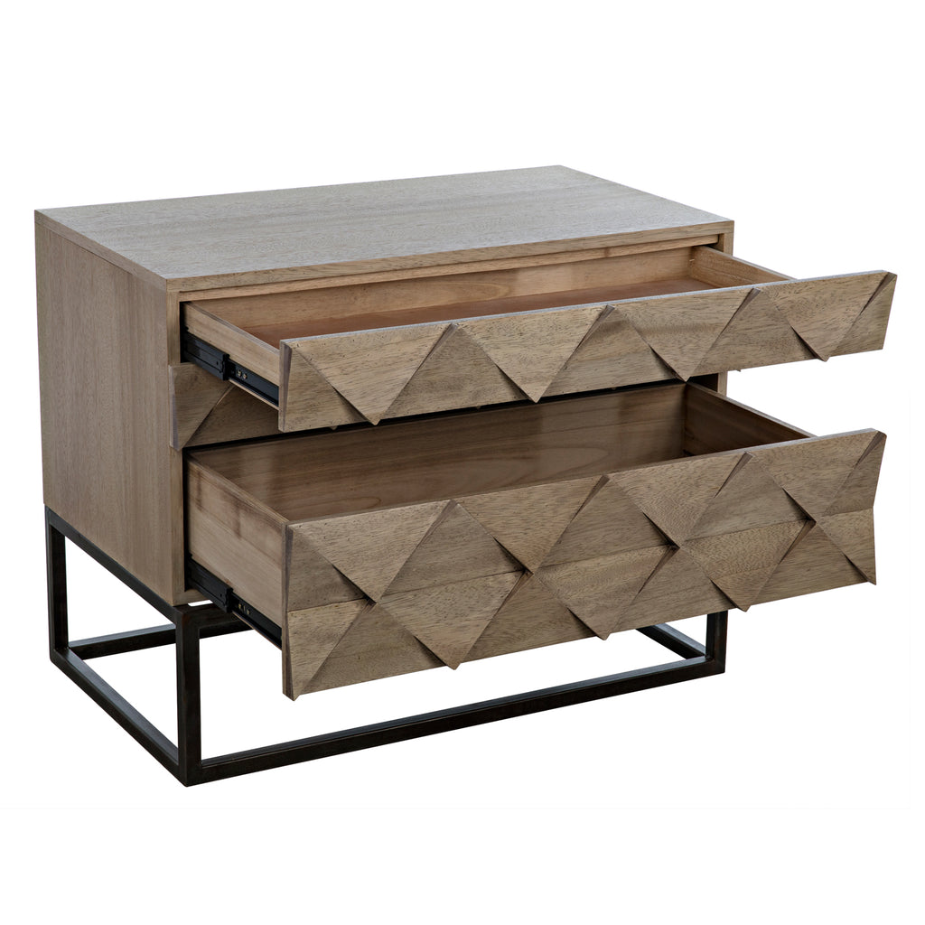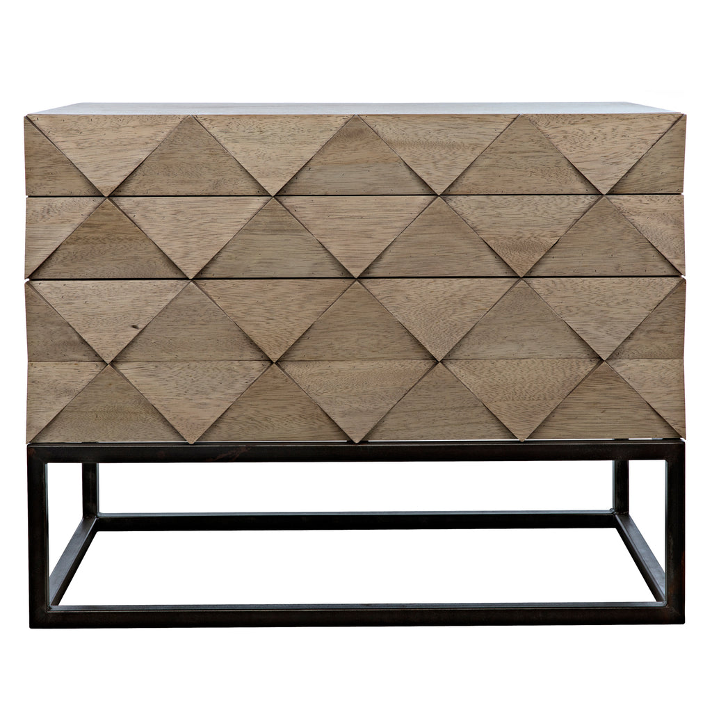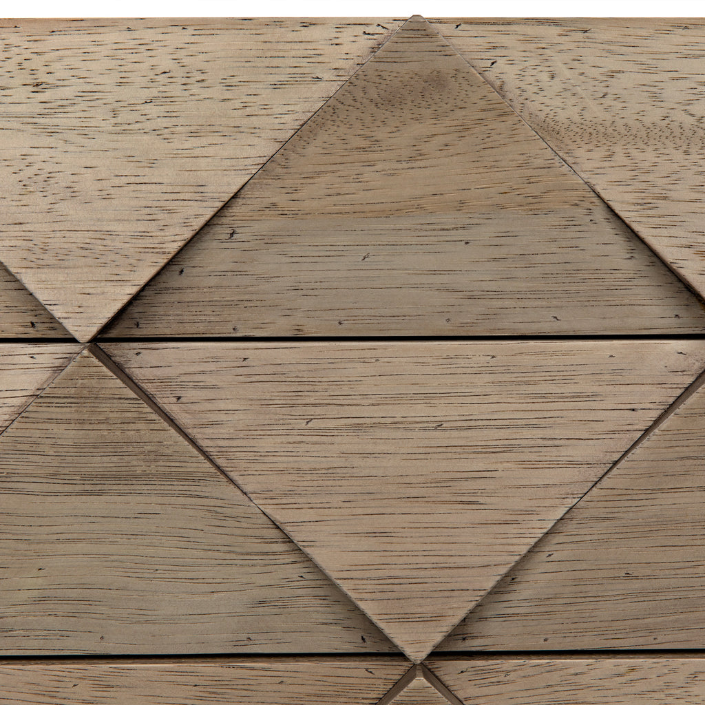 The Noir Draco sideboard features refined washed walnut or ebony walnut with three drawers, beautifully embellished with a repeating hand-carved pattern. Presenting a basic geometry lesson, triangles form diamonds and diamonds form squares. Together they are so much more than the sum of their parts!