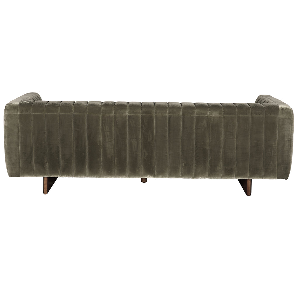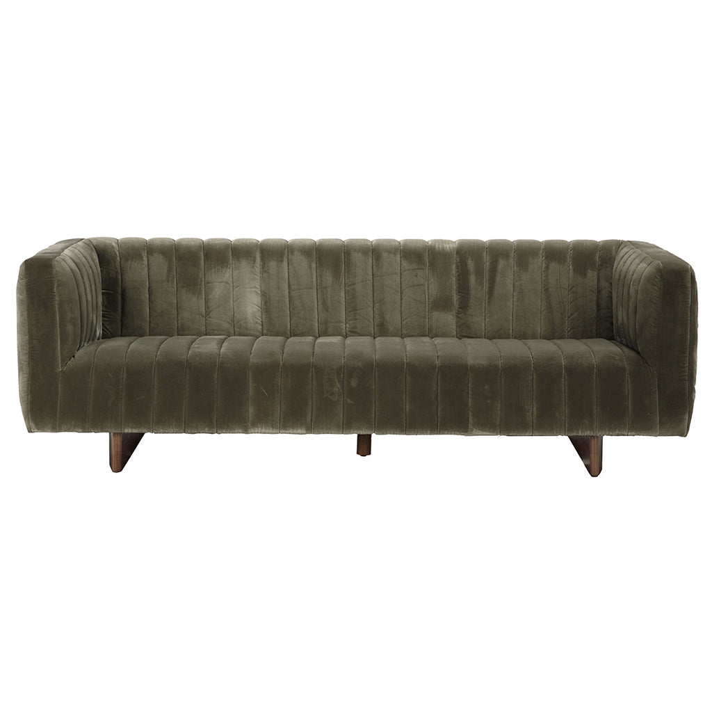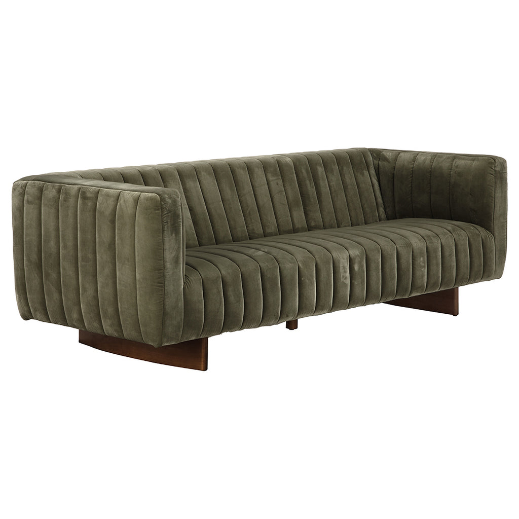 Classic form meets modern resilience in the Khann Sofa, now offered in lush olive green performance velvet. Its tailored silhouette is elevated by wood legs and a generous 6" clearance, while the soft yet durable fabric adds depth and richness to any setting.