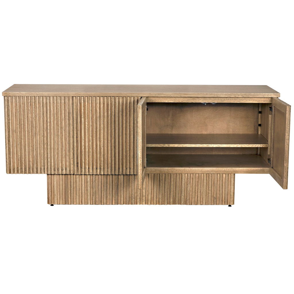 Crafted with precision, this sideboard boasts dimensions of 77.5 inches in width, 22 inches in depth, and 33.5 inches in height, offering ample storage space without compromising on style. The washed walnut finish exudes a contemporary charm, while the combination of Walnut and Veneer materials ensures both durability and a refined aesthetic.