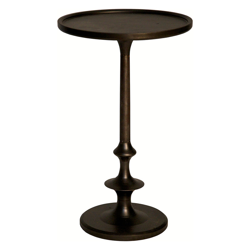 This elegant Noir table accents living rooms and bedrooms with contemporary function. Versatile to match a variety of aesthetics, this furnishing adds style to any space. The base of this small cast iron accent table mimics traditional turned wood. Perfectly sized to hold a hot cup of tea or a chilled martini, it has a classic, easy elegance that integrates into nearly any interior.