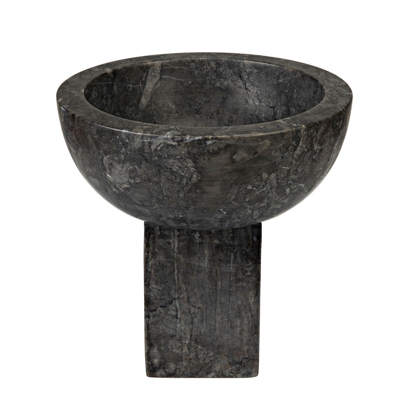 Take your everyday decor to the next level with this glamorous piece from Noir. Offering subtle nods to minimalist style, this effortlessly chic accent captivates atop a mantle. The simple geometry of a sliced sphere, and an elongated cube combine in the chunky Noir Zeta pedestal bowl in natural black marble. A catch-all, a vase, a centerpiece, a simple but bold statement.