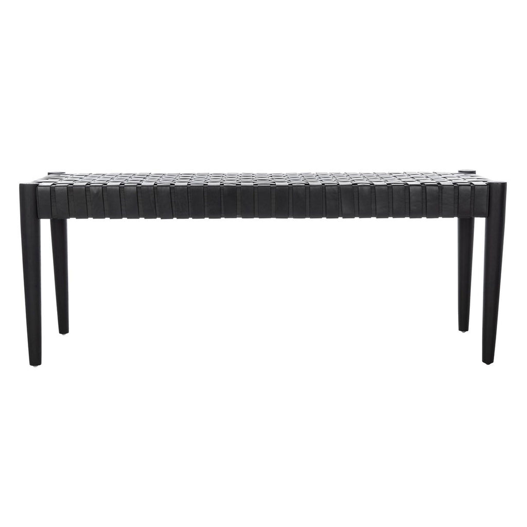 Savor time around the dining table with family and friends on this contemporary leather weave bench. A blend of style and substance, its durable leather and wood construction ensures everyone is comfortable from appetizers to dessert.