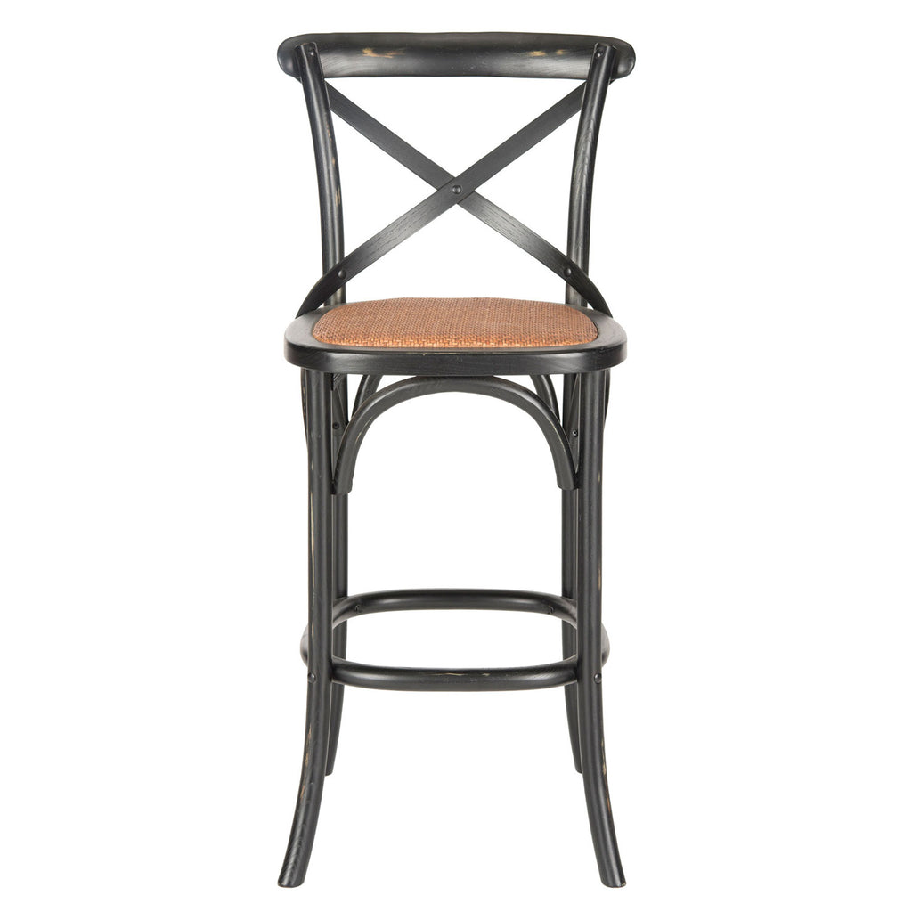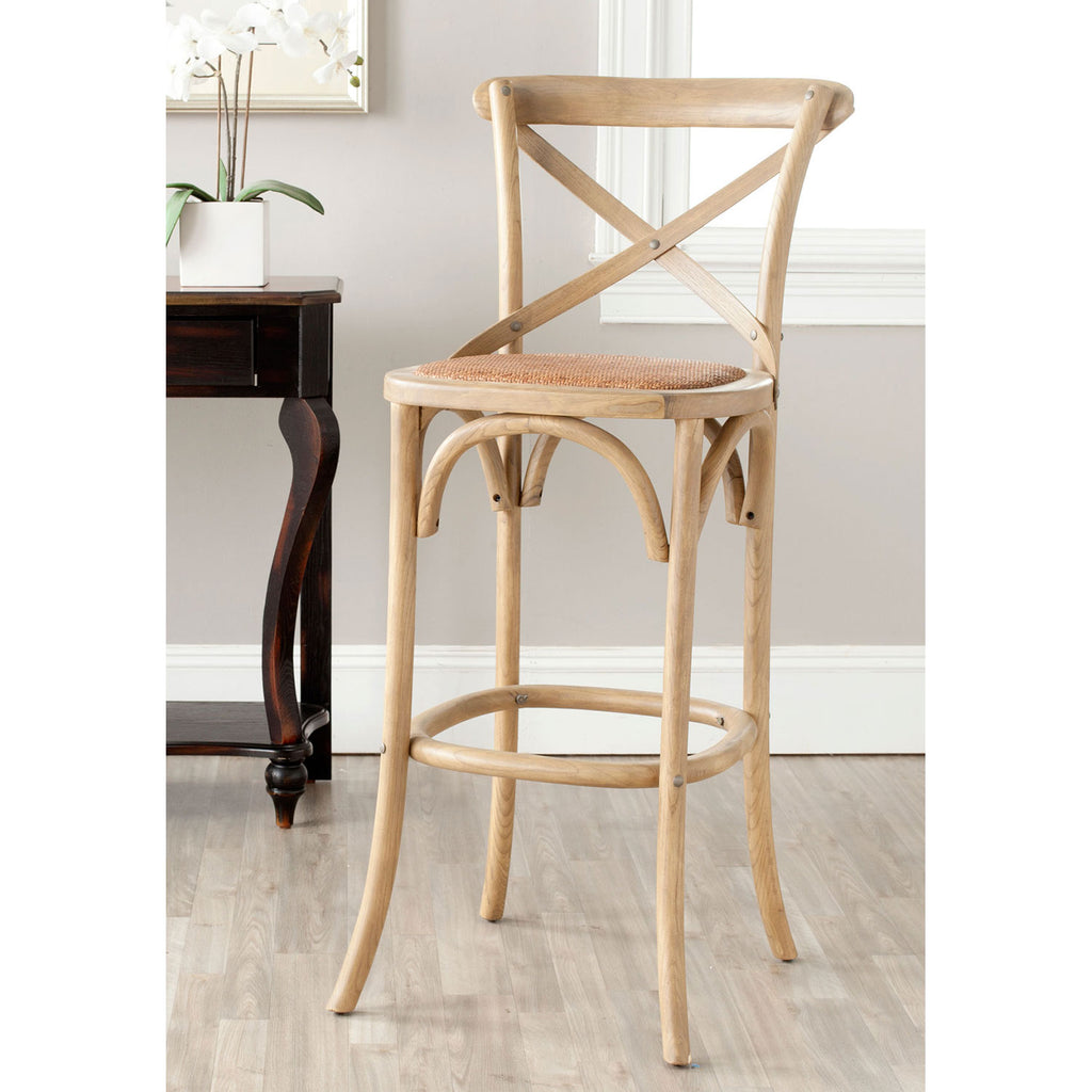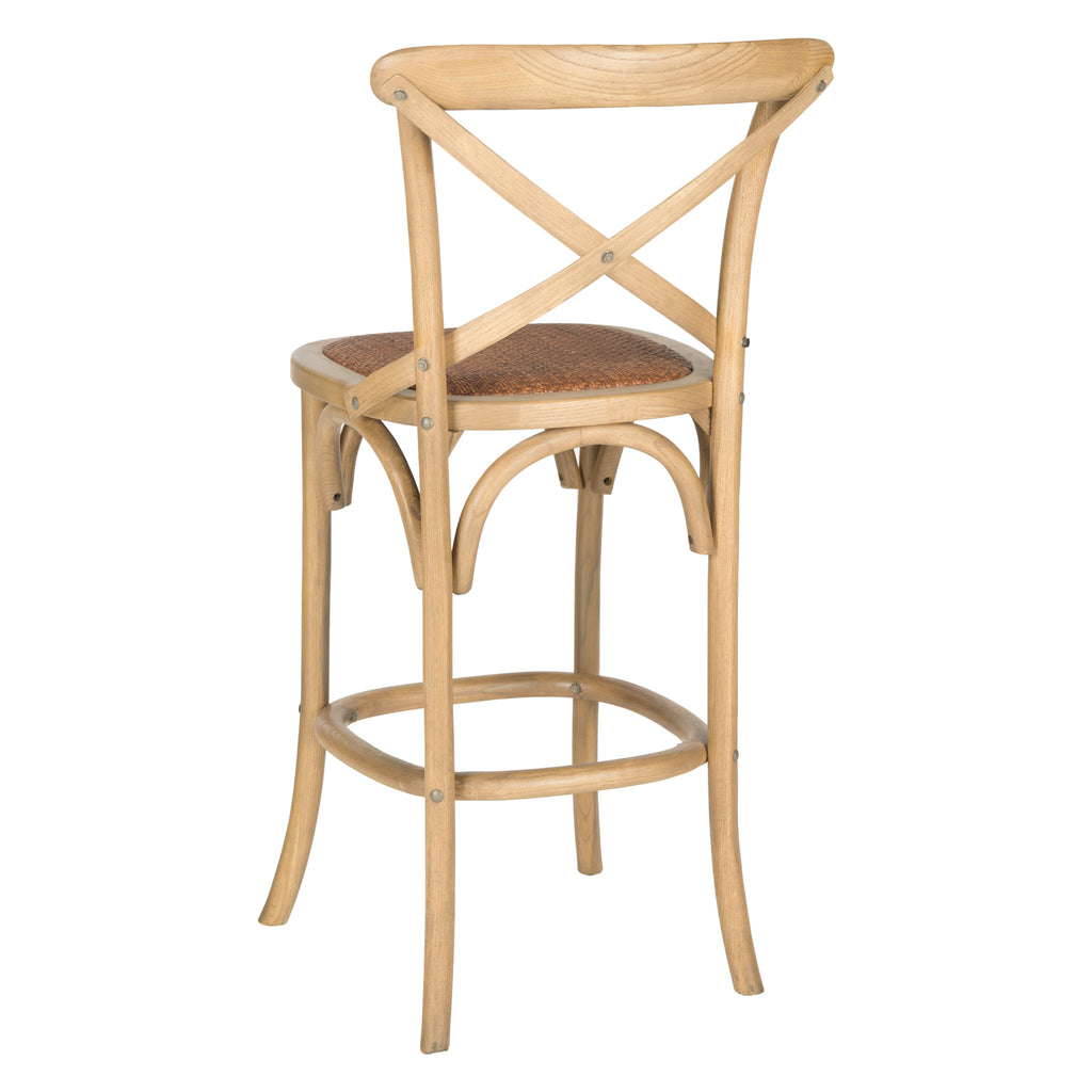 With its willowy frame and iconic cross-back inspired by Michael Thonet’s classic bistro chair, this bar stool is ideal in kitchen or great room. Crafted of solid American oak, including the X arch brace, this casual bar stool is finished with a seat of rattan caning.