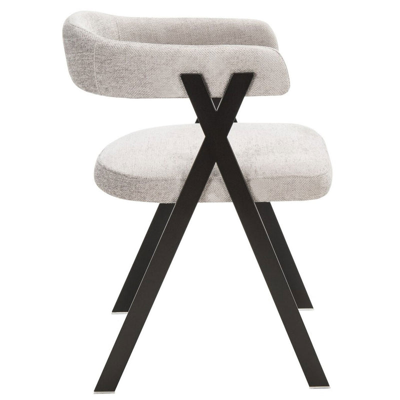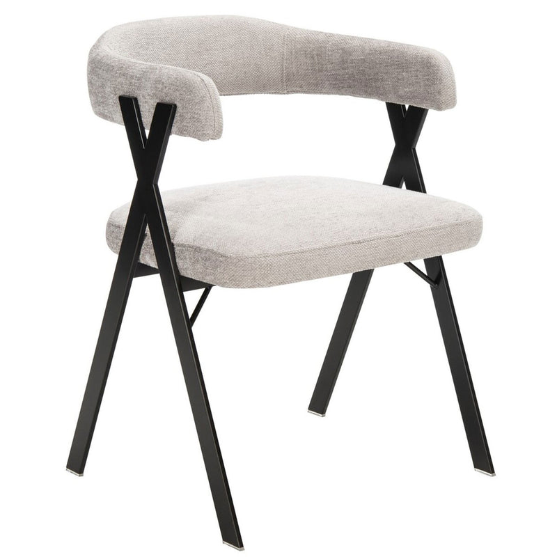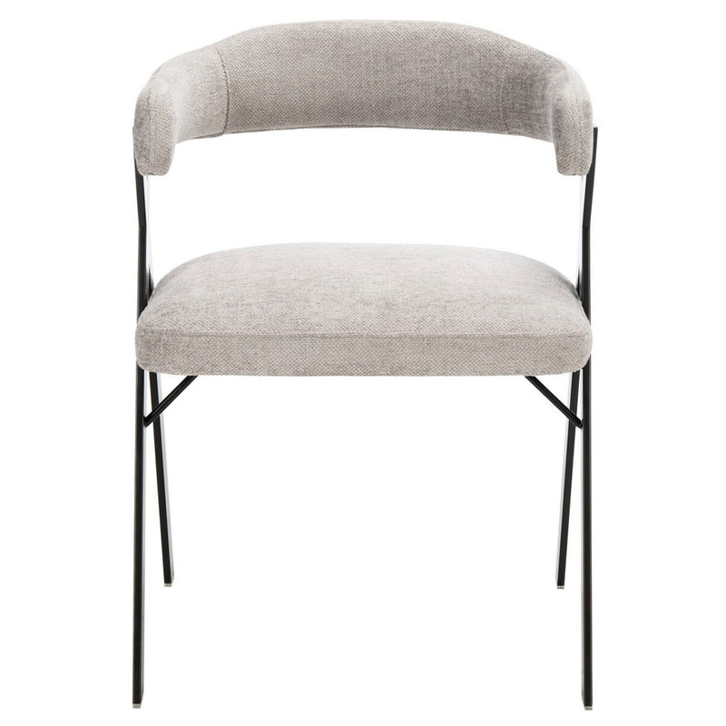 Industrial chic style gets a soft, contemporary twist in chenille dining chair. Izzy’s black geometric frame beautifully complements the smooth curves of an open back and plush grey viscose blend upholstery. A chic statement in any modern dining room.