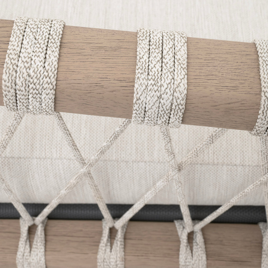 • Materials: Solid Teak Wood, Polyolefin Rope, 100% Olefin Fabric, Foam