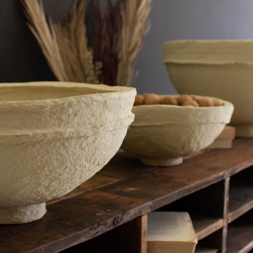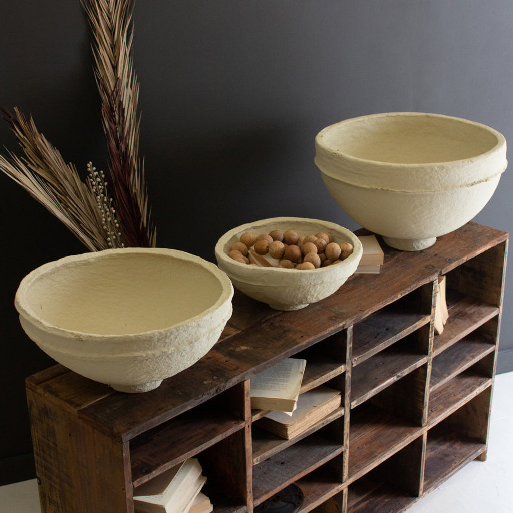 This set will bowl you over. This Set of 3 paper mache bowls is made in India. Display your decor or keep change corralled with these versatile bowls