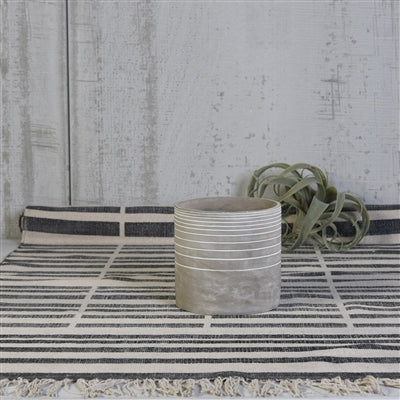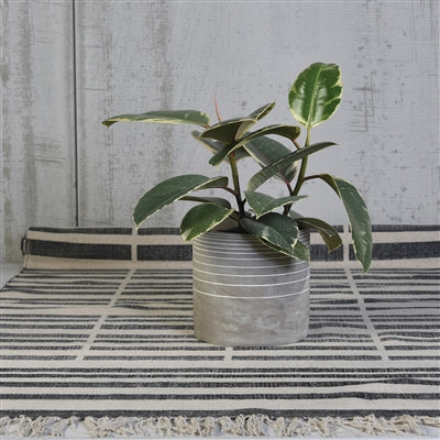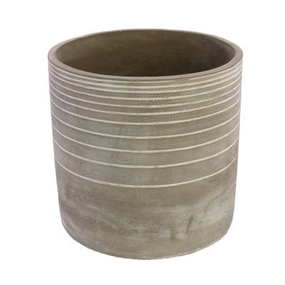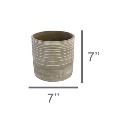 Constructed from sturdy cast cement with a graphic embossed pattern, this cachepots is perfectly sized for a 7in drop in cachepot.