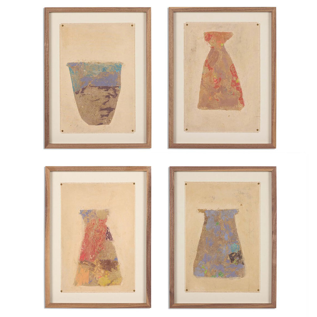 The son of a homebuilder, Austin, Texas-based painter and sculptor Paul Meyer developed an early fascination with construction and materials. This set of four captures a collection of ancient vessels worn and textured by time. His work has been featured in The New York Times, Architectural Digest, Elle Decor and more. Handmade in Austin, Texas.