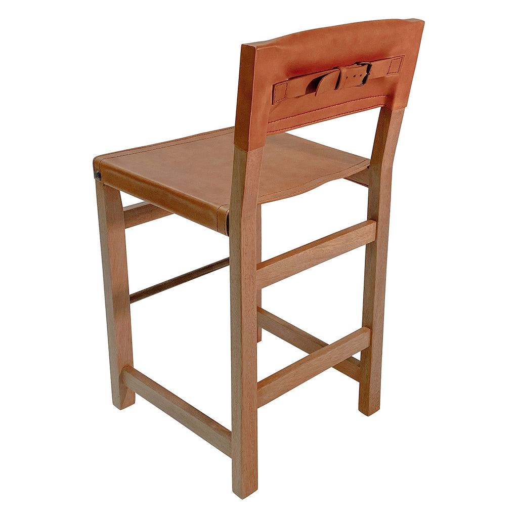 With design lines that combine campaign and director’s chair lines, this unique lightweight straight legged Peninsula Home counter stool is the perfect addition to today’s kitchen seating. The vegetable tanned leather seat and back are complemented by a metal buckle centered in the outside back.