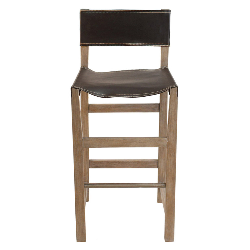 With design lines that combine campaign and director’s chair style, this Peninsula Home unique lightweight straight legged  counter stool is the perfect addition to today’s kitchen seating. The vegetable tanned leather seat and back are complemented by a metal buckle centered in the outside back.