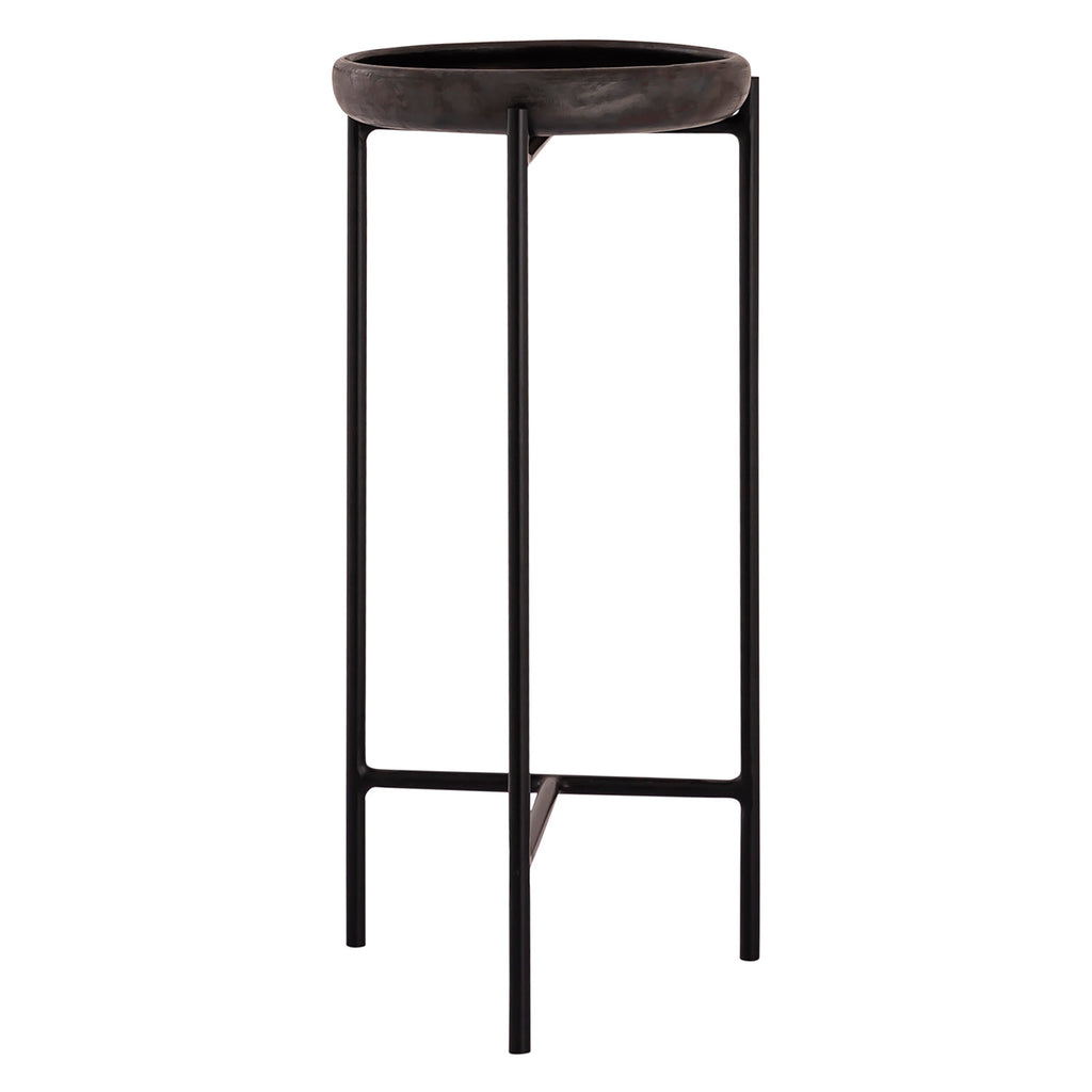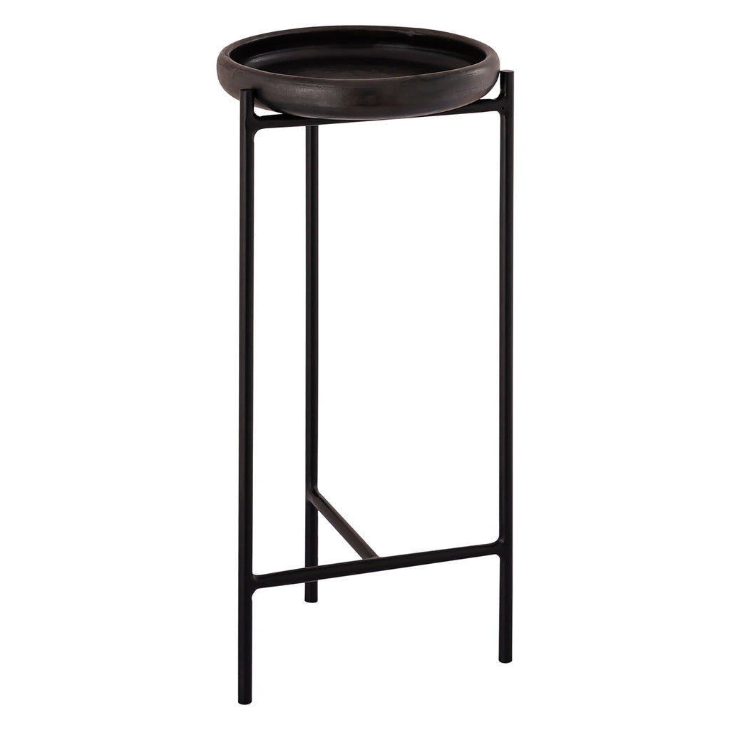 The Peppo table features a bowl-like top on a tripod base. Its neutral black color and basic design ensures its invitation to any party setting and that it will fit anywhere from the family room to the buffet stand.