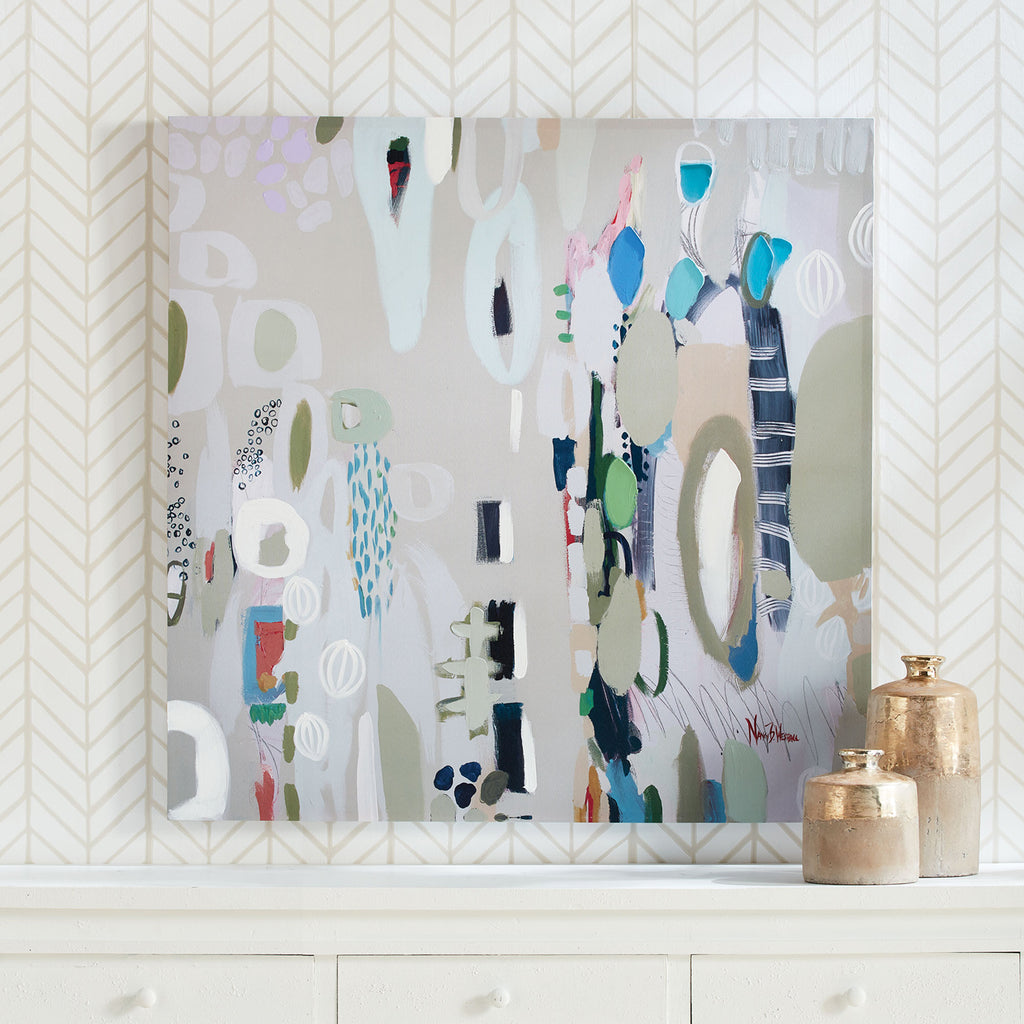 The Persephone is a decorative home accent designed to elevate your space. Crafted from firwood/canvas, finished in beige,blue, it brings texture, warmth, and timeless style to any room. Made with a high-quality printing process and hand-embellished for added texture and color. This neutral palette painting by Nancy B. Westfall is simply stunning.