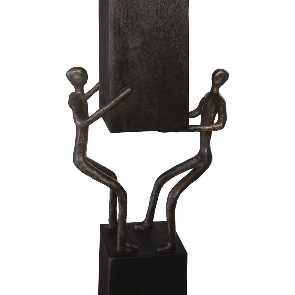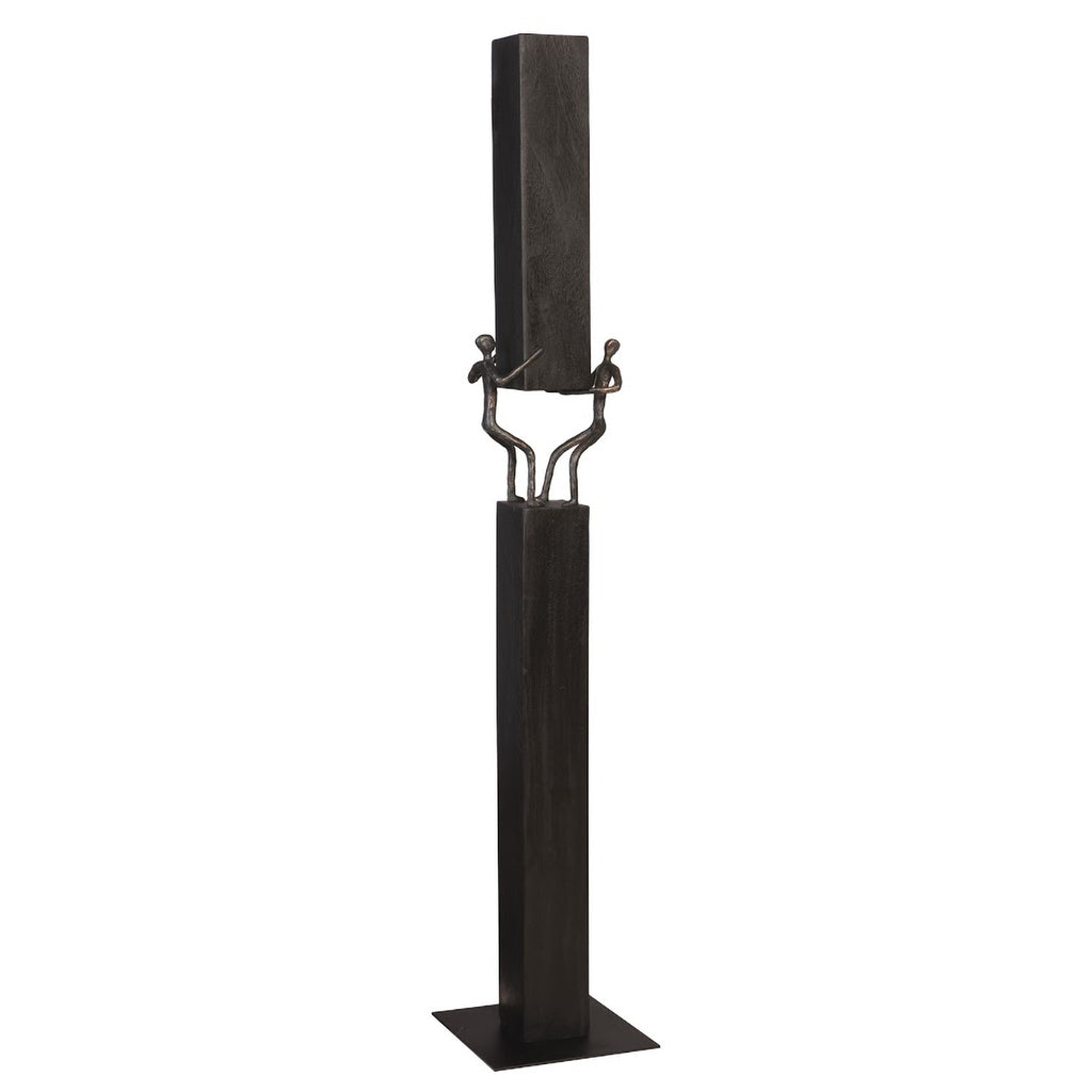 The Atlas Balancing Sculpture has a storied namesake. In Greek mythology, Atlas was the Titan god of endurance whom Zeus tasked with holding up the celestial heavens for eternity. The figure supporting the black wood block on this black sculpture has as weighty a job as the mythical hero. We have three decorative sculptures in this series.
