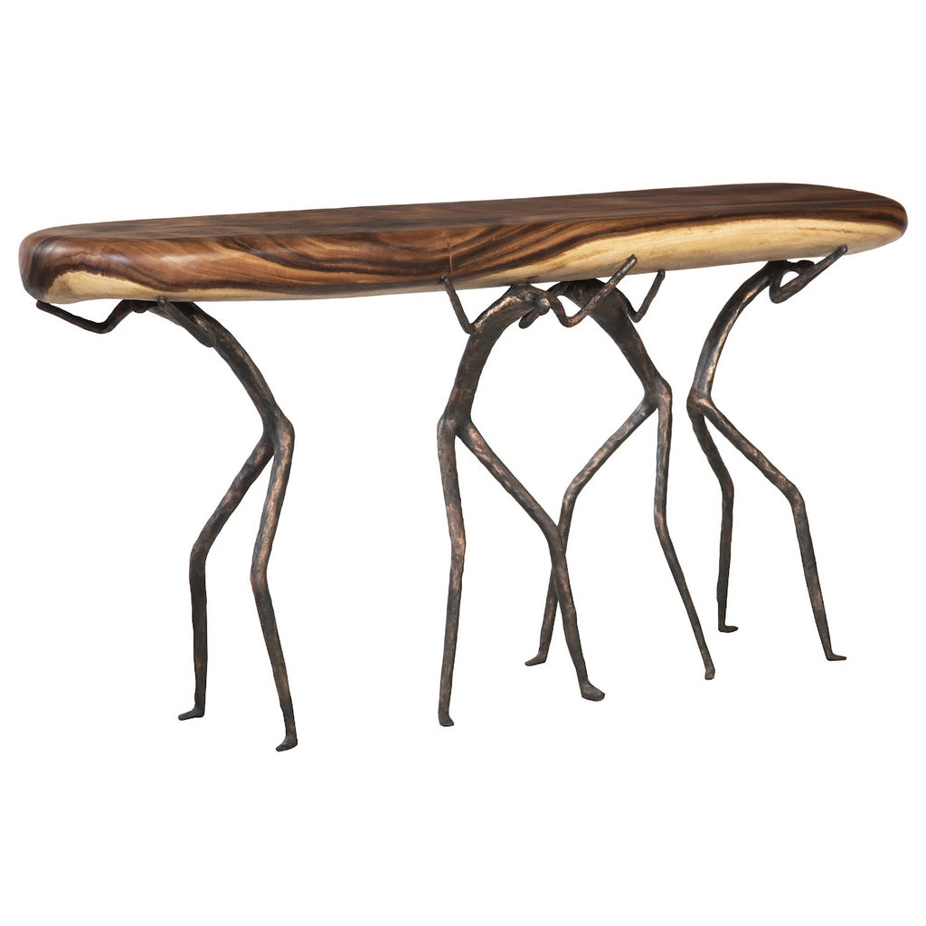 In Greek mythology, Atlas was the Titan god of endurance. After warring with the Olympian gods, Zeus tasked Atlas with holding up the celestial heavens for eternity. These extraordinary new pieces from Phillips Collection will certainly leave an impression that will endure, as the metal figures "hold up" the pieces in this series.