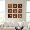 The clean lines of the Posing Figure Square Wall Decor make this warm piece of decorative wall art a perfect accent for contemporary, modern farmhouse, and mid-century modern interiors. Abstractly rendered in metal in a bronze finish, the slim figure adds a whimsical accent to the reclaimed wood frame that also brings a textural appeal to a room. Powerful on its own, this piece of art can be combined with five other abstract figures, each playing its part within the cutout in the square wood wall plate.