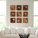 • Crafted by hand from natural acacia wood, there may be organic variations in the form of these wall pieces. Variations may include cracks, divots or imperfect edges.