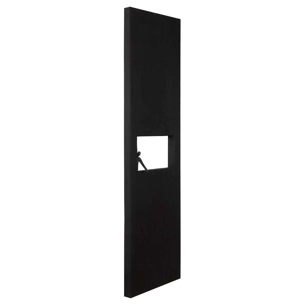 The clean lines of the Posing Figure Wall Decor make this warm piece of decorative wall art a perfect accent for contemporary, modern farmhouse, and mid-century modern interiors. Abstractly rendered in metal in a bronze finish, the slim figure adds a whimsical accent to the reclaimed wood frame that also brings a textural appeal to a room. Powerful on its own, this piece of art can be combined with five other abstract figures, each playing its part within the cutout in the square wood wall plate.