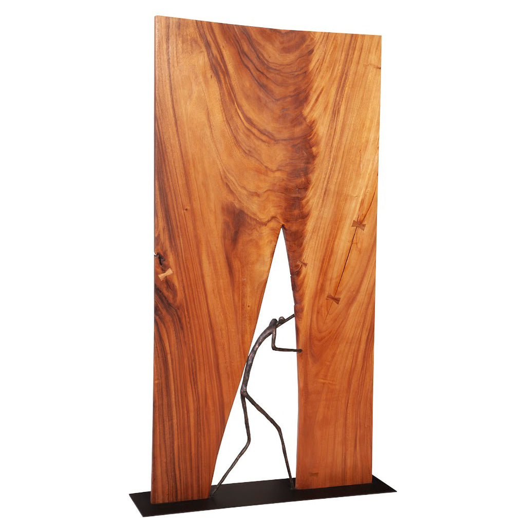 The Atlas Screen is a decorative room screen made of chamcha wood ornamented with a whimsical metal figure in a bronze finish. Because this piece is crafted from natural solid wood, color and woodgrain character may vary, adding a unique personality to your piece.
