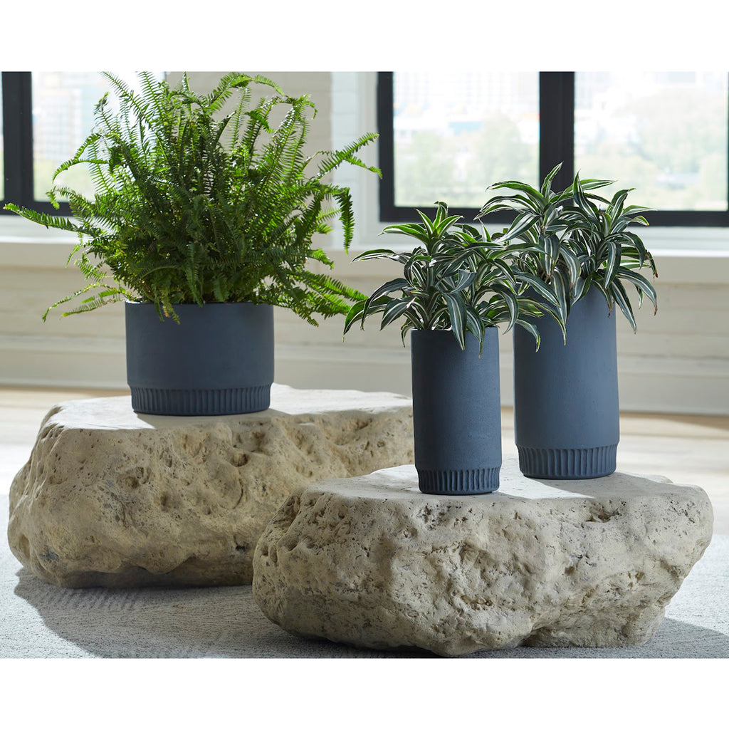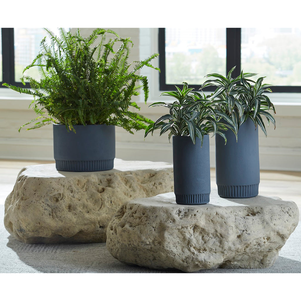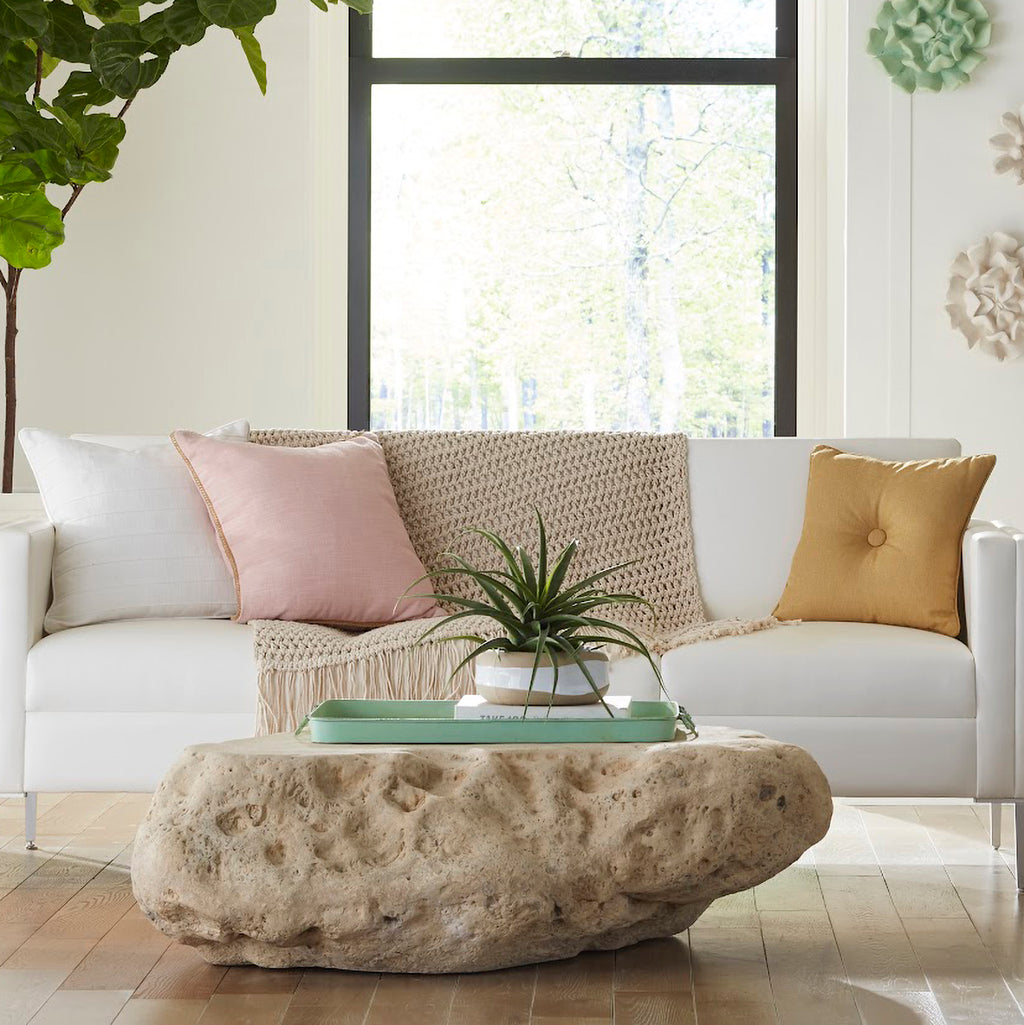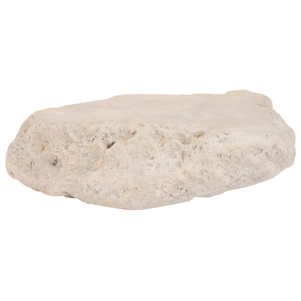 Though the Boulder Roman Stone Coffee Table looks as though it could have rolled from some rocky ledge, it is actually made of composite in a Roman Stone finish. The adeptness of our talented artisans who cast products like these is evident in the random stippling that convinces the eye this is real stone. We also offer the Boulder in a smaller coffee table, both of which are weather-worthy for placing out of doors.