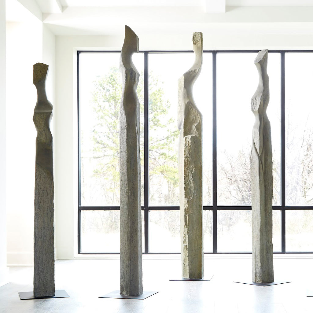 The female figure has been celebrated in art as long as artists have been expressing their creativity. The Colossal Roman Stone Cast Woman Sculpture D is an abstracted female form in amplified proportions at 79-inches tall. The Roman Stone of Splinter Stone finish brings it a vintage vibe, and the aged patina makes this decorative sculpture look like it’s made of stone.