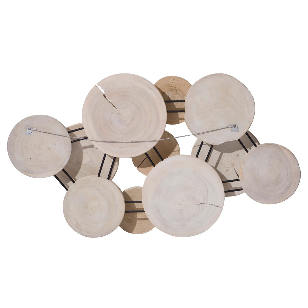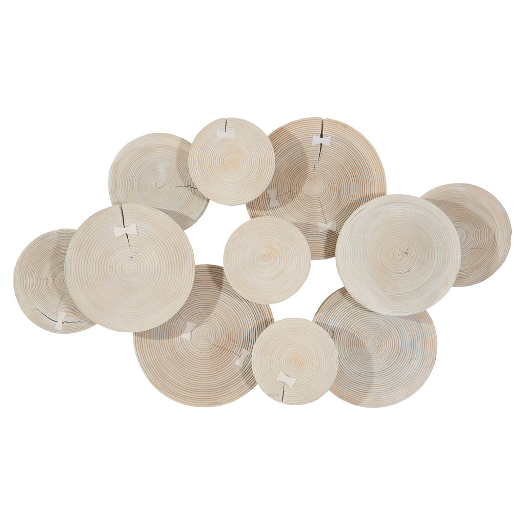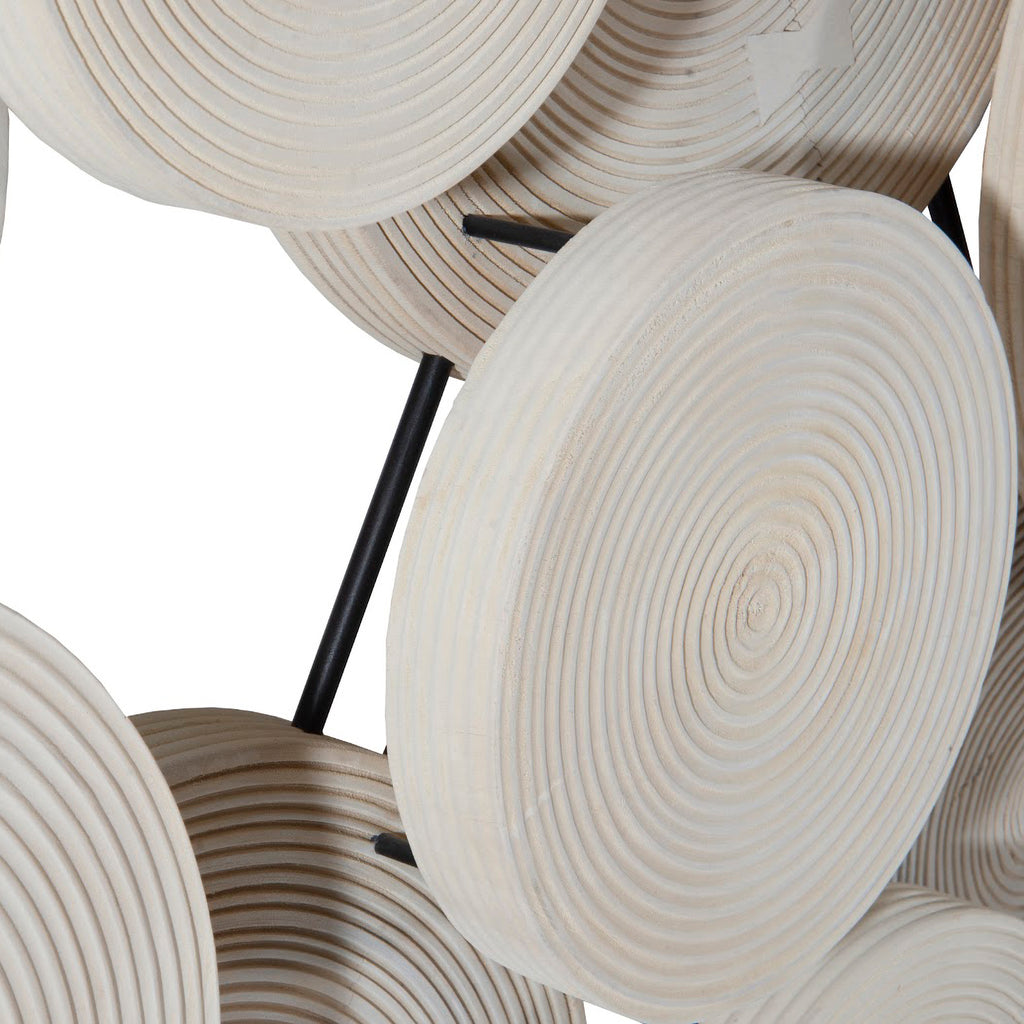 Like an artful arrangement of clouds floating in the stratosphere, the Clouds Wall Art has a complex profile that will be the perfect asymmetrical decorative accent on any wall in a home. Made of mango wood in a bleached finish, this version of Clouds would look stunning on a dark surface given the depth achieved with the circlets stacked at random. The rings that are pressed into its surface bring it a hint of texture.