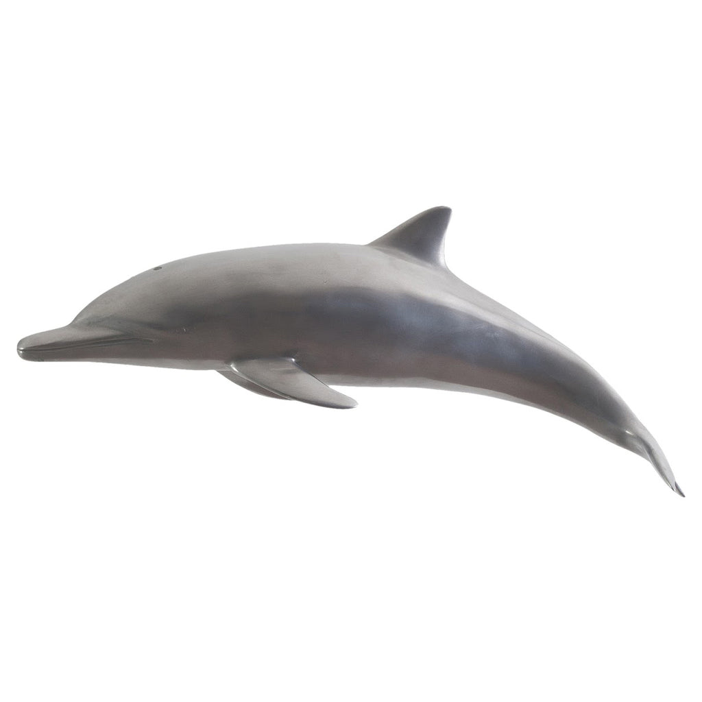 The Dolphin Gray Wall Sculpture is made of composite in a polished aluminum finish. This likeness of the seafaring creature is a chameleon of style—hang it in a modern kitchen and it takes on a zesty panache; place it in a child’s bedroom and it will become a playful element in the space. Whether you have a lakefront home, a beachfront condo, or an urban oasis, the Dolphin Gray Wall Sculpture with its handsome finish will bring the watery world inside. Powerful on its own, group this sculpture in multiples to create a school of fish for added impact. We also offer this sculpture in a silver version. Both of these pieces of decorative wall art reflect the ethos that Phillips Collection personifies: modern organic.