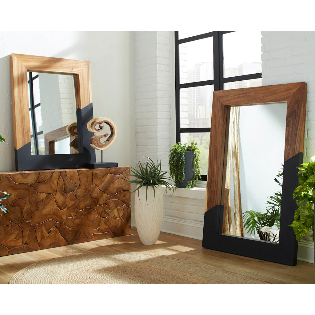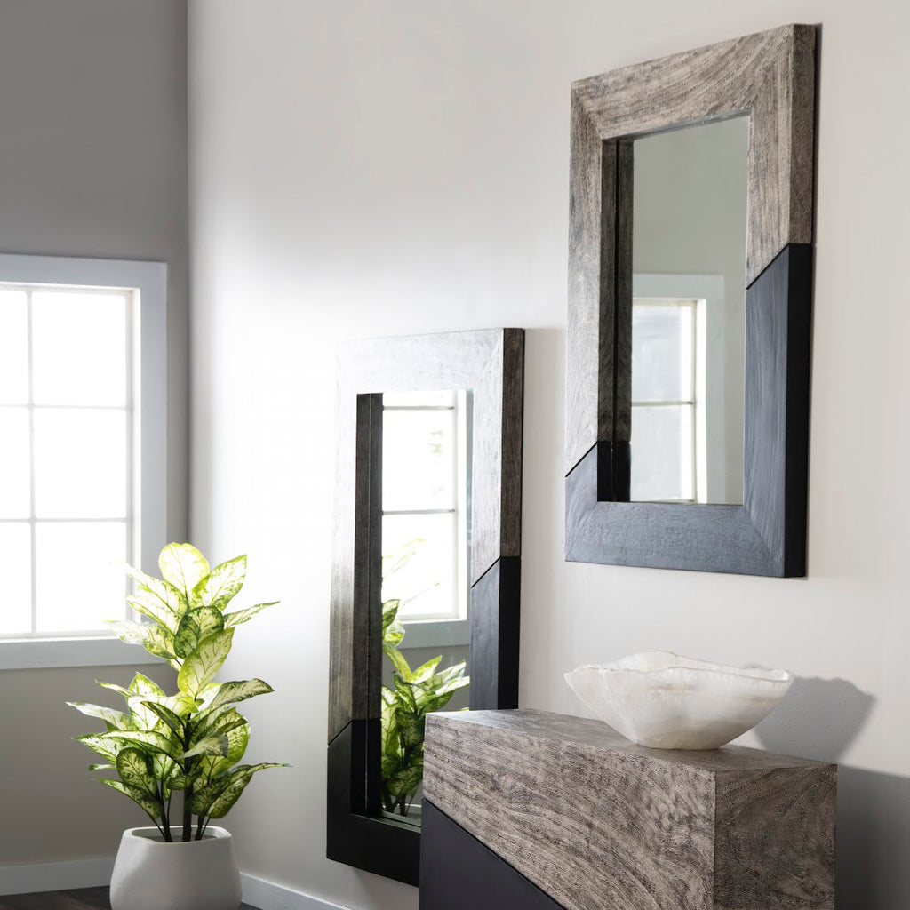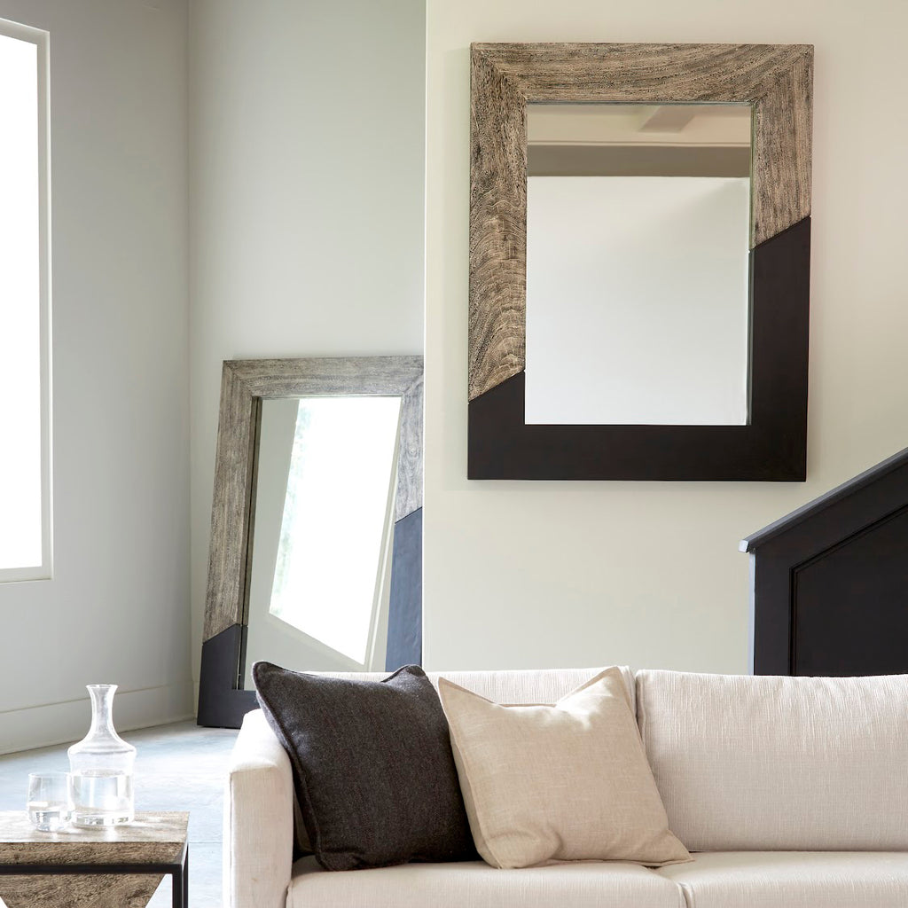 The Geometry Wood Mirror, has created a sophisticated profile that brings organic warmth and contemporary cleanness to a space. The surface variations of the woodgrain also bring texture into a room.