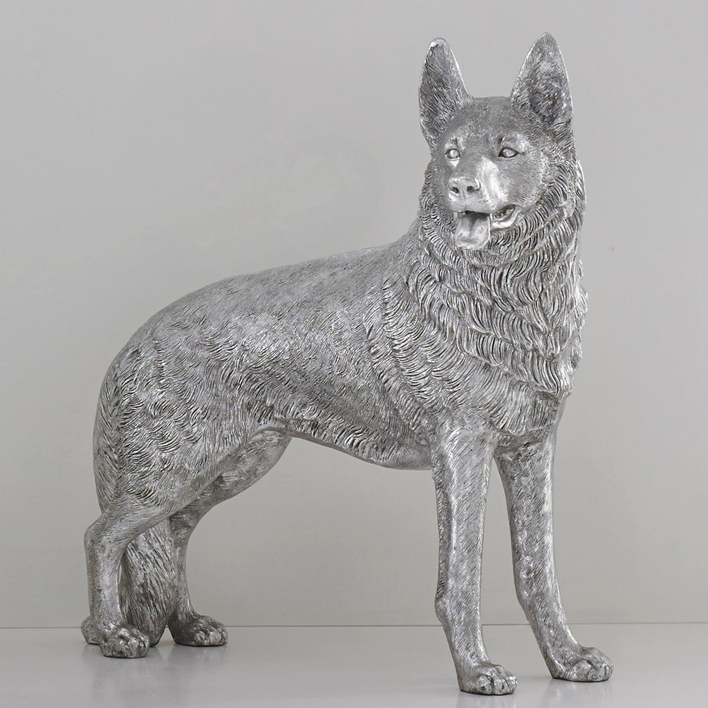 The fact that it is both playful and powerful makes our Standing German Shepherd Dog Sculpture a paradoxical decorative accessory. Ears perked and expression attentive, it’s man’s best friend without the hassle of maintenance! A true artisanal piece, the decorative dog sculpture is made of aluminum in a variegated finish in which black and silver bring it added patina.