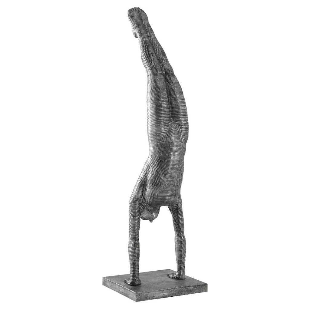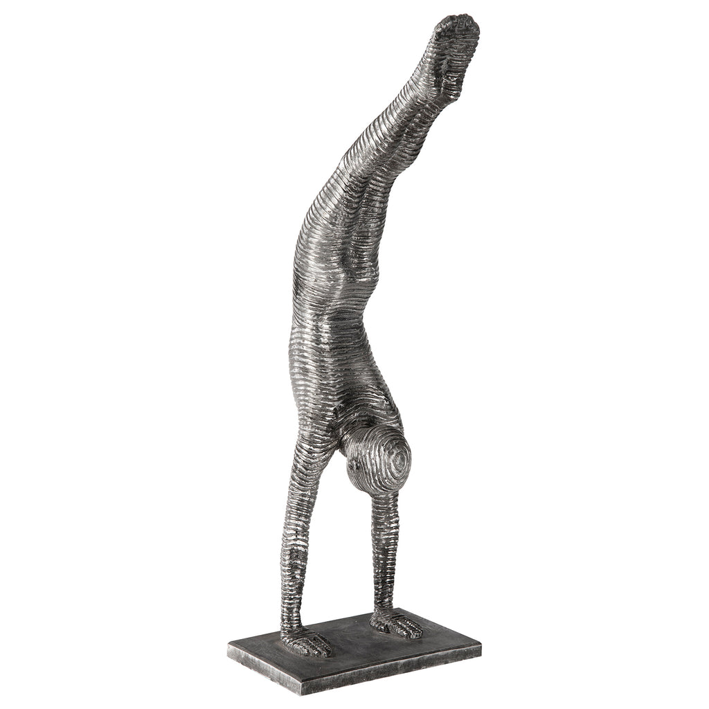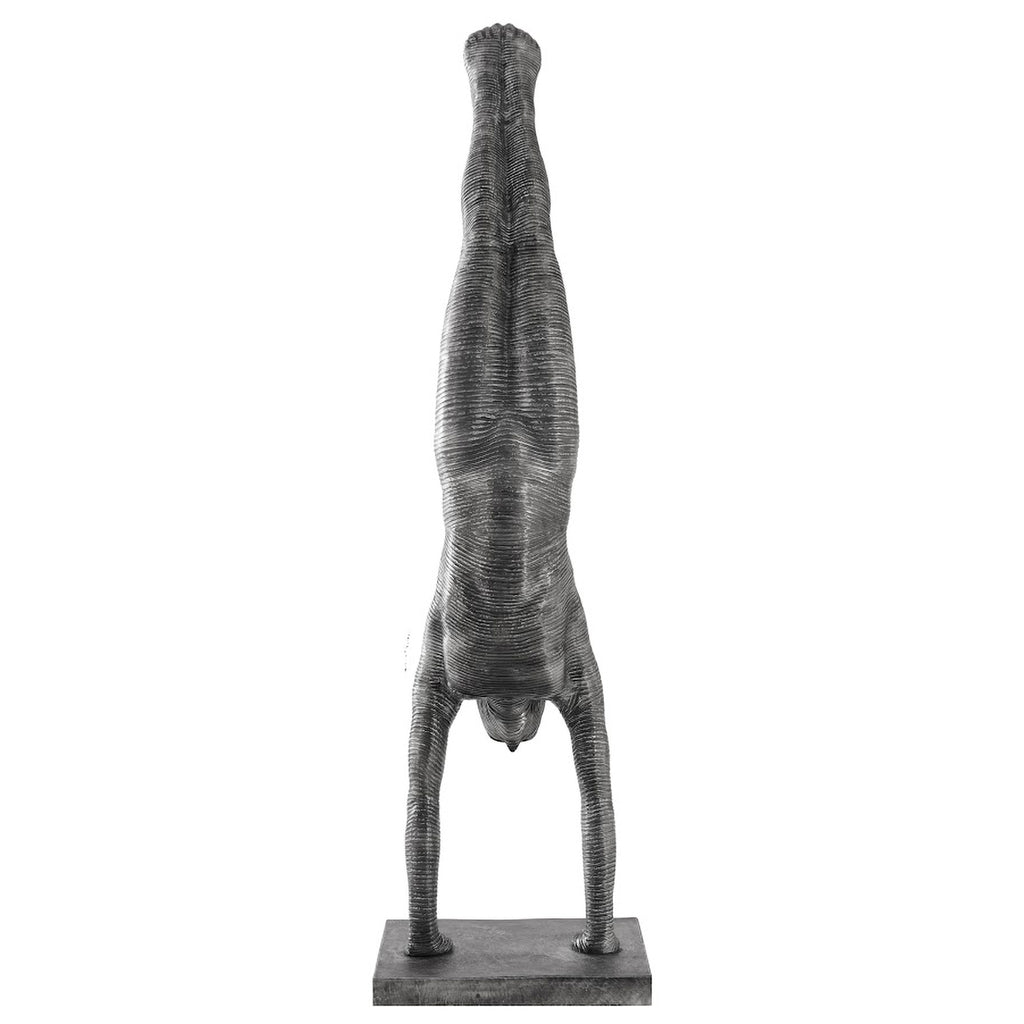 With an enviable athleticism, the Handstand Sculpture is forged from aluminum that has a striated surface to bring added interest to the sizable piece of art. The design of this piece has all of the hallmarks of great talent: it shows in the flatness of the hands, the position of the head, the arc of the back, and the graceful pointing of the feet. A human torso at its most fit has been captured just so.