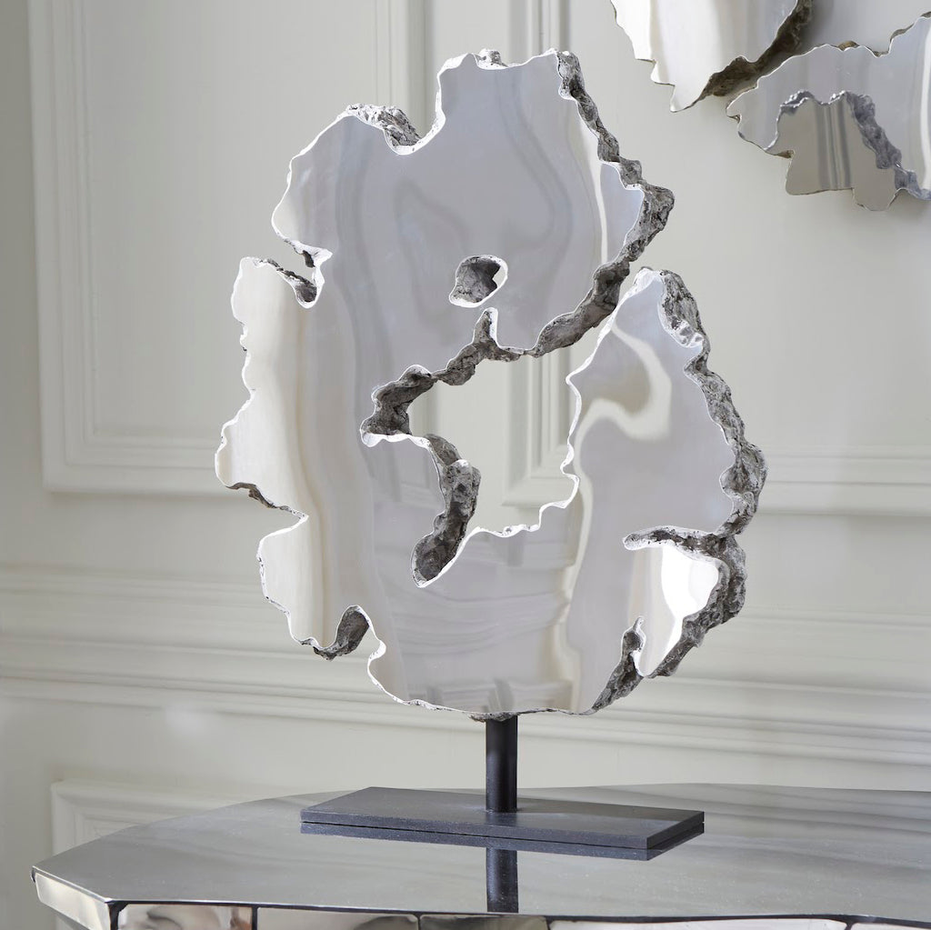 Talk about a conversation piece. This sculpture is made from cast lava stone and a hand-cut and mirror-polished stainless steel. Organic luxe. Now who doesn’t want that!?