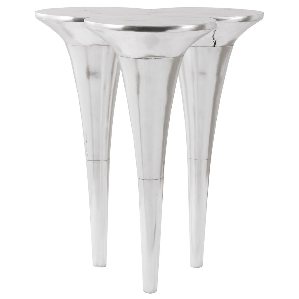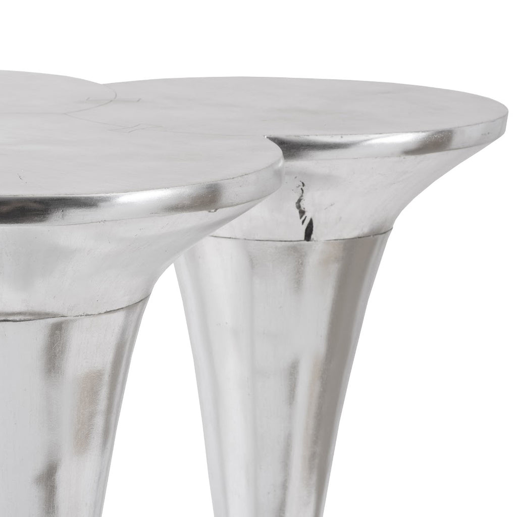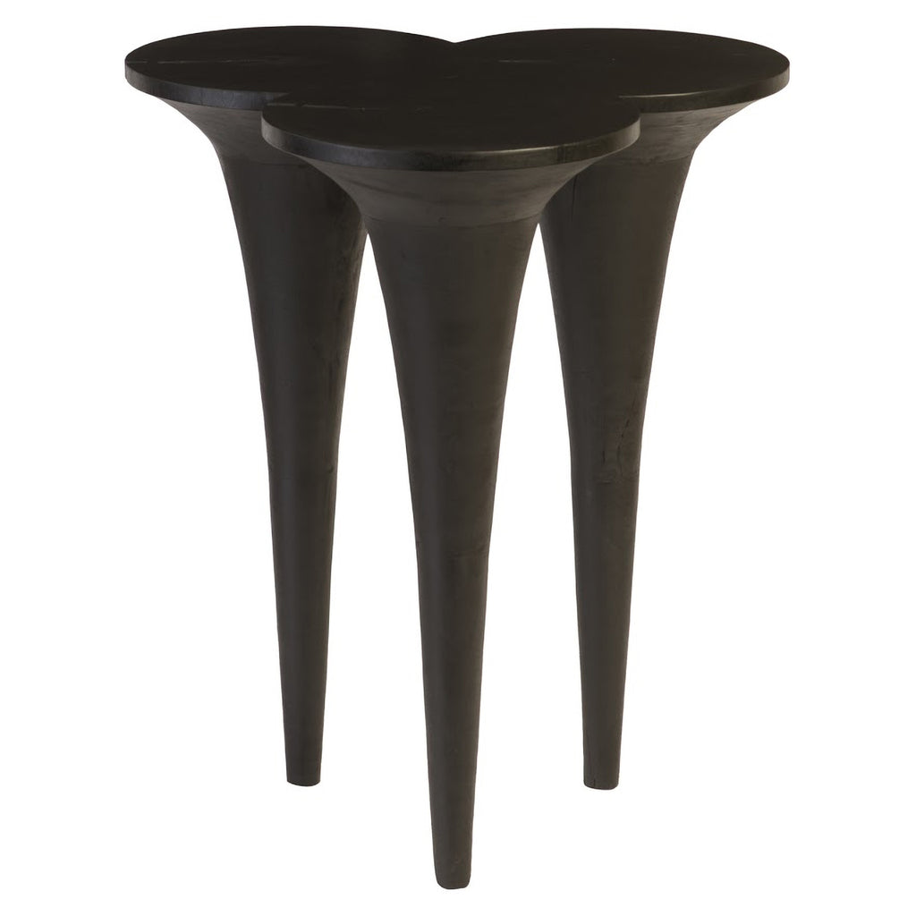 Made of a triad of golf-tee shapes, the Marley Bar Table is a chic bar table with a deep burnt finish. The scalloped top that these shapes form make this a personable accent table in any space.
