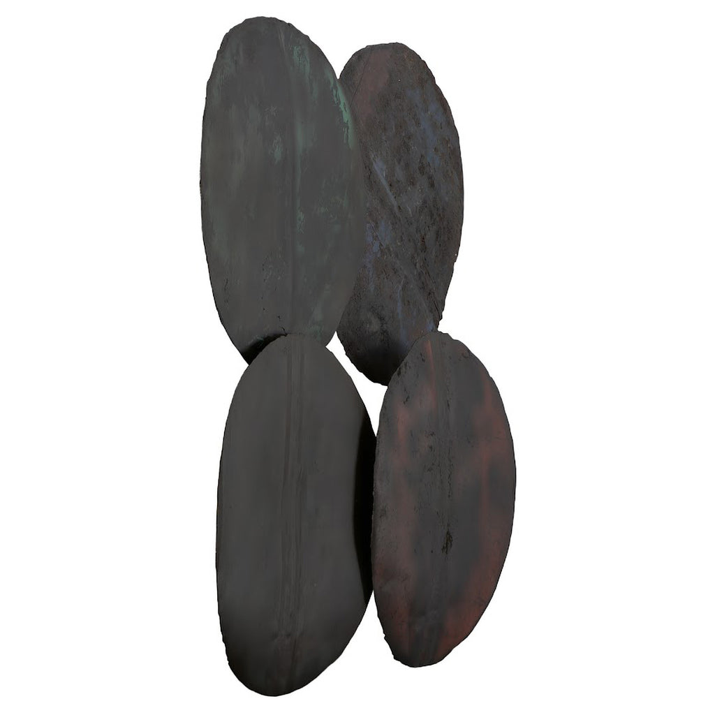 • These are upcycled materials. Variances in color, oxidation, imprints and markings exist. Crafted from reclaimed oil drums, these pieces will vary in color and detail from the drum they came from. Some have details of stamped writing or caps from the lid. Some have color and others do not.