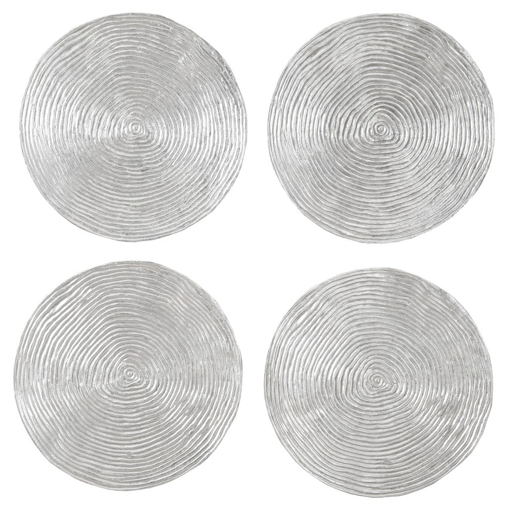 Any designer will affirm the importance of texture in a space, which makes the Ripple family of furnishings a favorite. The Ripple Wall Disk Set is made of composite in a silver leaf finish, the rings that are pressed into their surfaces bring them a hint of texture.