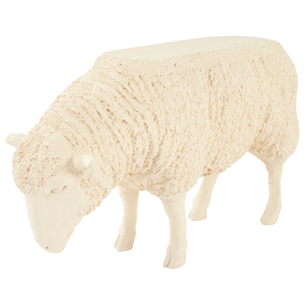 Playful and functional, the Sheep Side Table is cast from composite to be as lovable as it is fully functional as a side table. The inspiration for this ivory side table with pale peach accents was our popular sheep sculpture. We simply flattened the top to make it a usable surface. What child's bedroom wouldn't be a happy place with this table in the space?.
