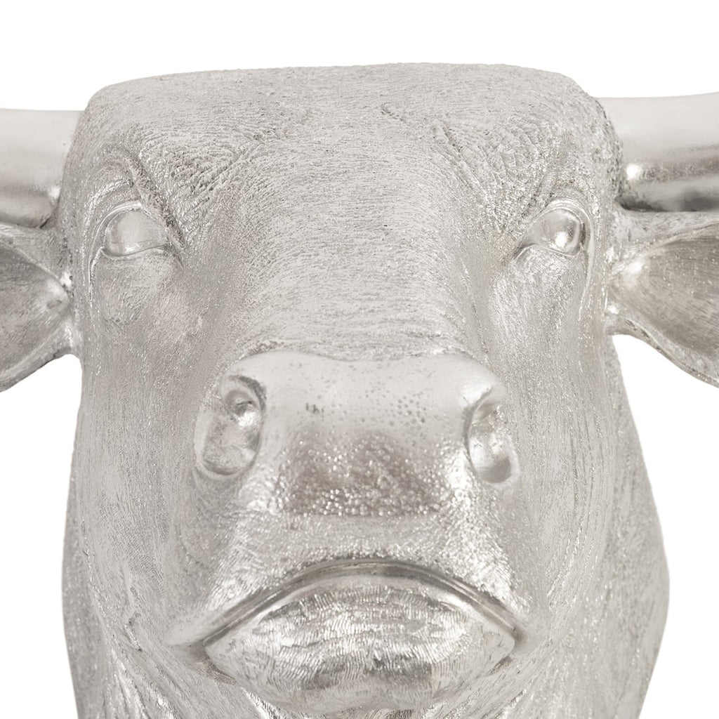 Cast in artisan-grade resin and hand finished in silver leaf, this realistic Spanish Fighting Bull is made modern with a signature touch of glamour. It is the perfect addition to make a statement on any wall.