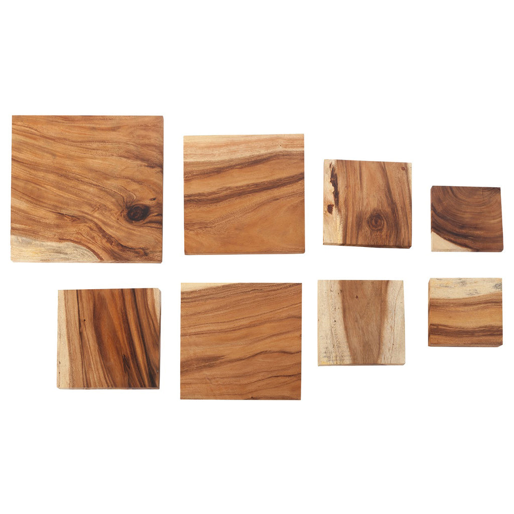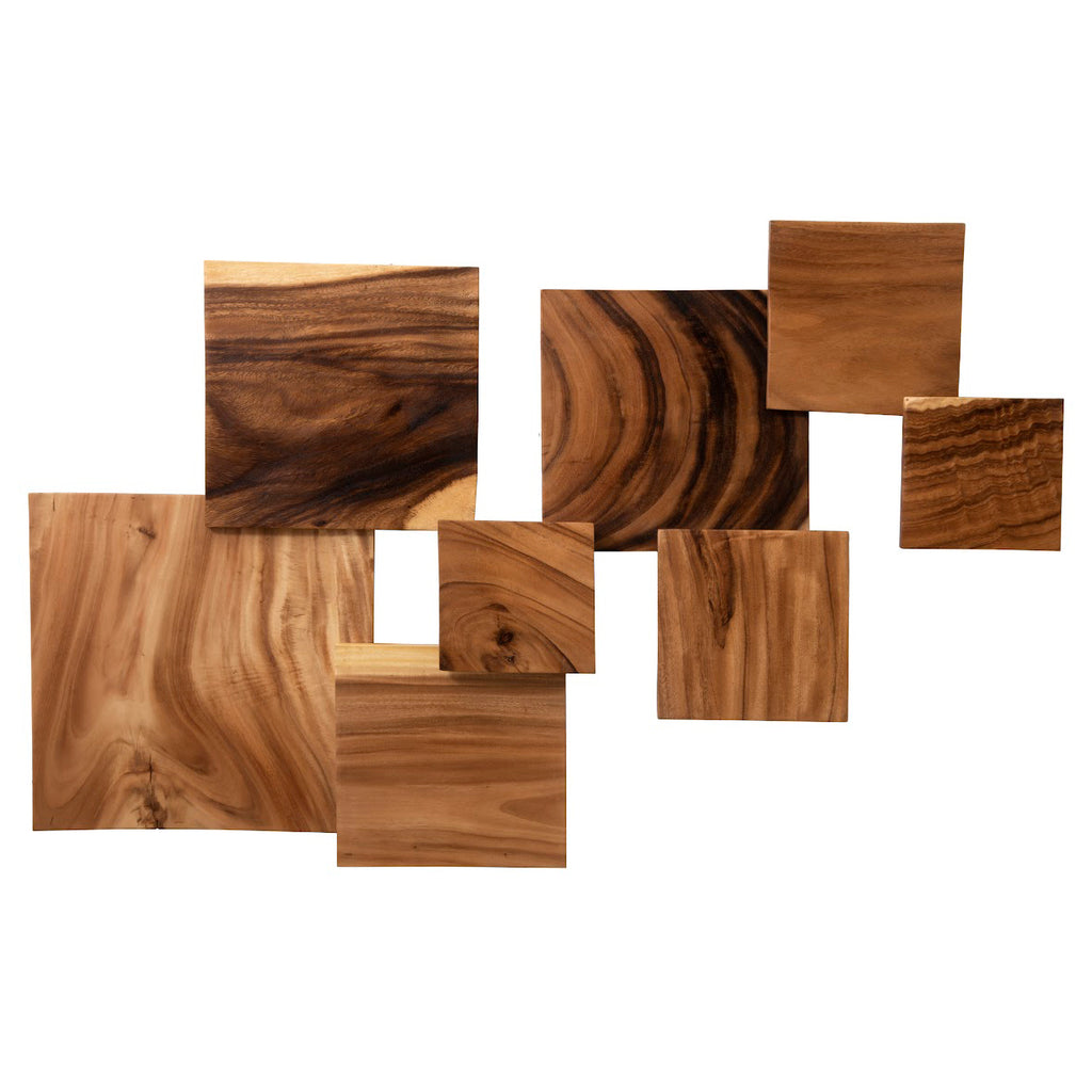 At Phillips Collection, we are highly selective in the wood we source. Chamcha is a fast-growing species of the Acacia family and is native to Thailand. We are drawn to the beautiful wood grains and blonde sap lines that create this two-toned natural finish. No need to change what Nature has already perfected! Simple square cut tiles in varying sizes can be individually hung to create a unique standout wall decor piece.