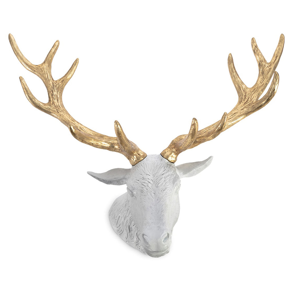 The Stag Deer Head Wall Art brings a room all of the exoticism the big game hunter has been afforded throughout history without having to spend time schlepping across the Rocky Mountains! Plus, there’s no guilt for non-hunters with our luminous white and gold sculpture, as it is made of composite in a mix of lacquered white and gold leaf finishes. Who knew an animal known for its ruggedness could look so glamourous!