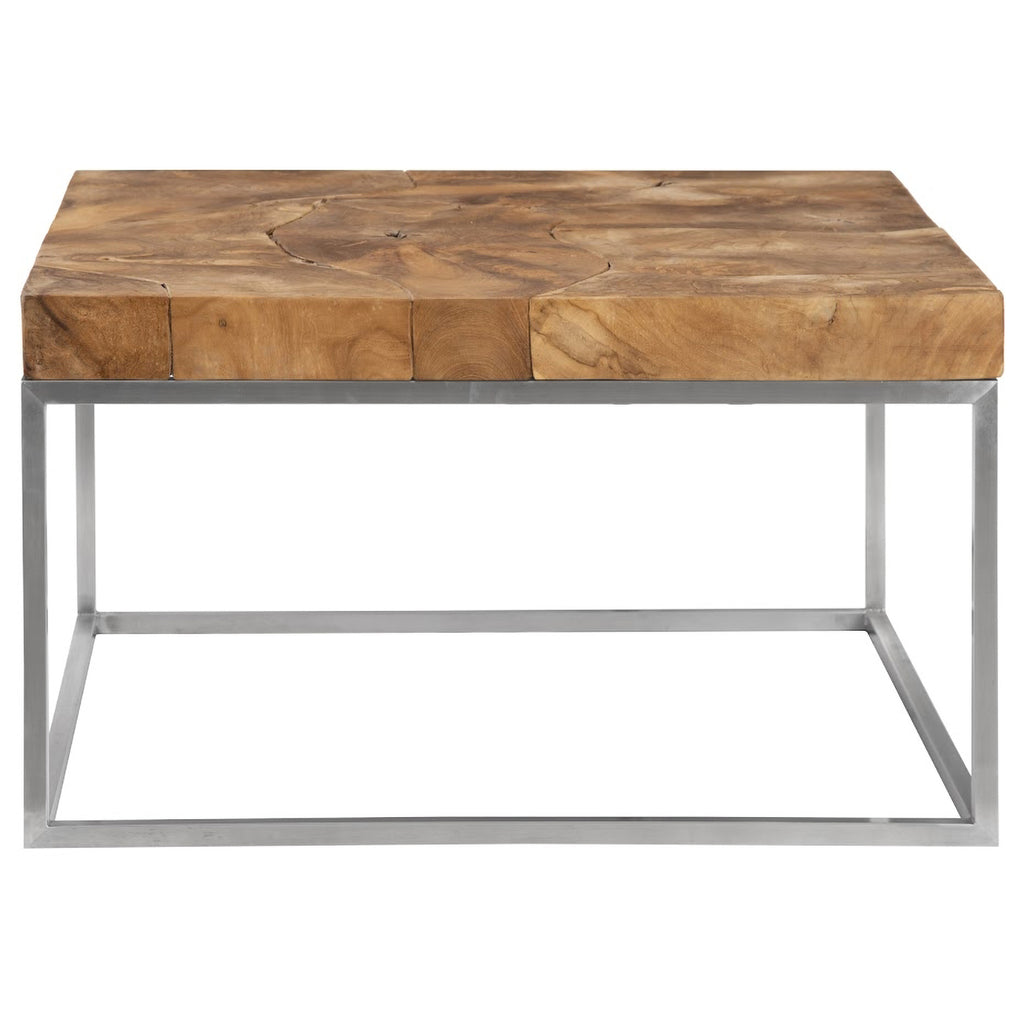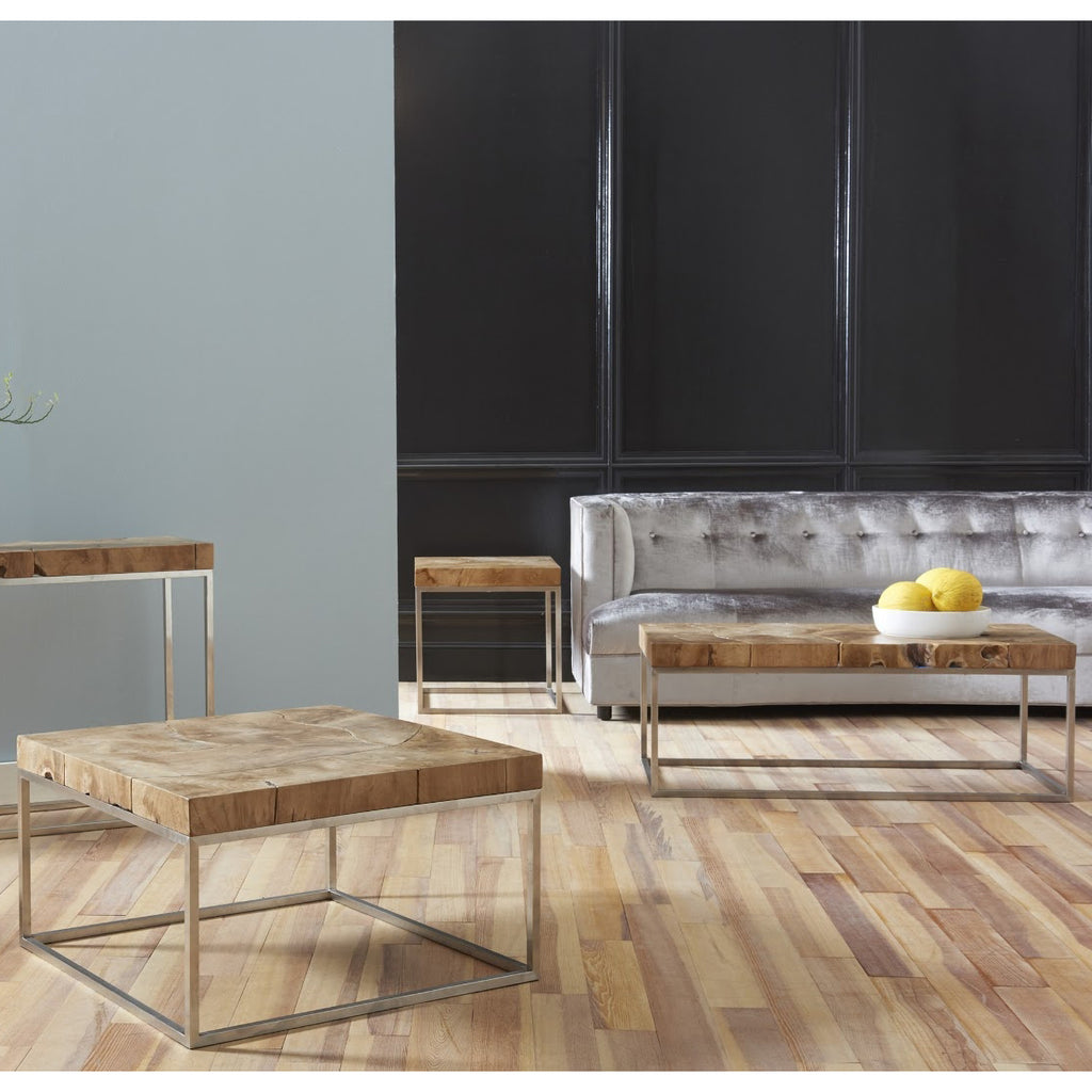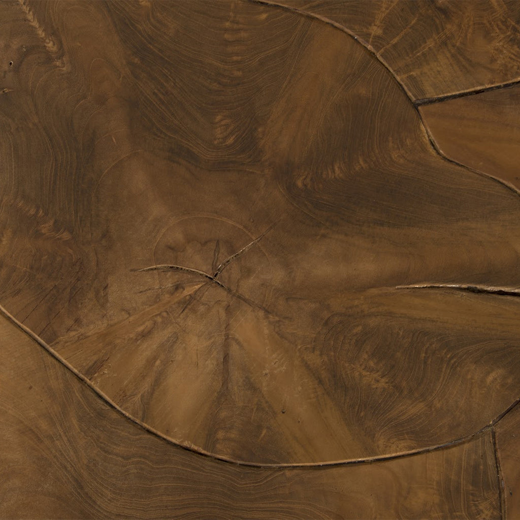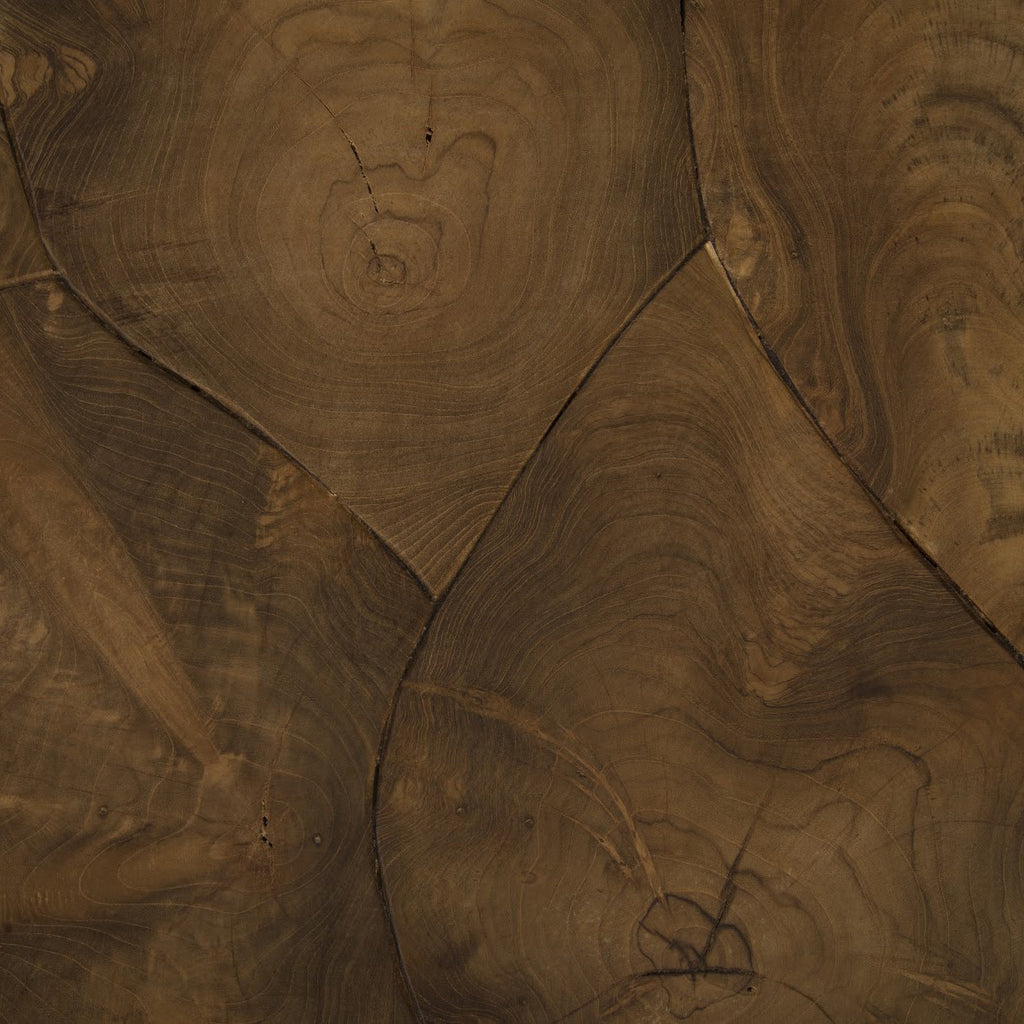Scraps of teak wood are puzzled together and hand finished with care to create these organic contemporary tables.