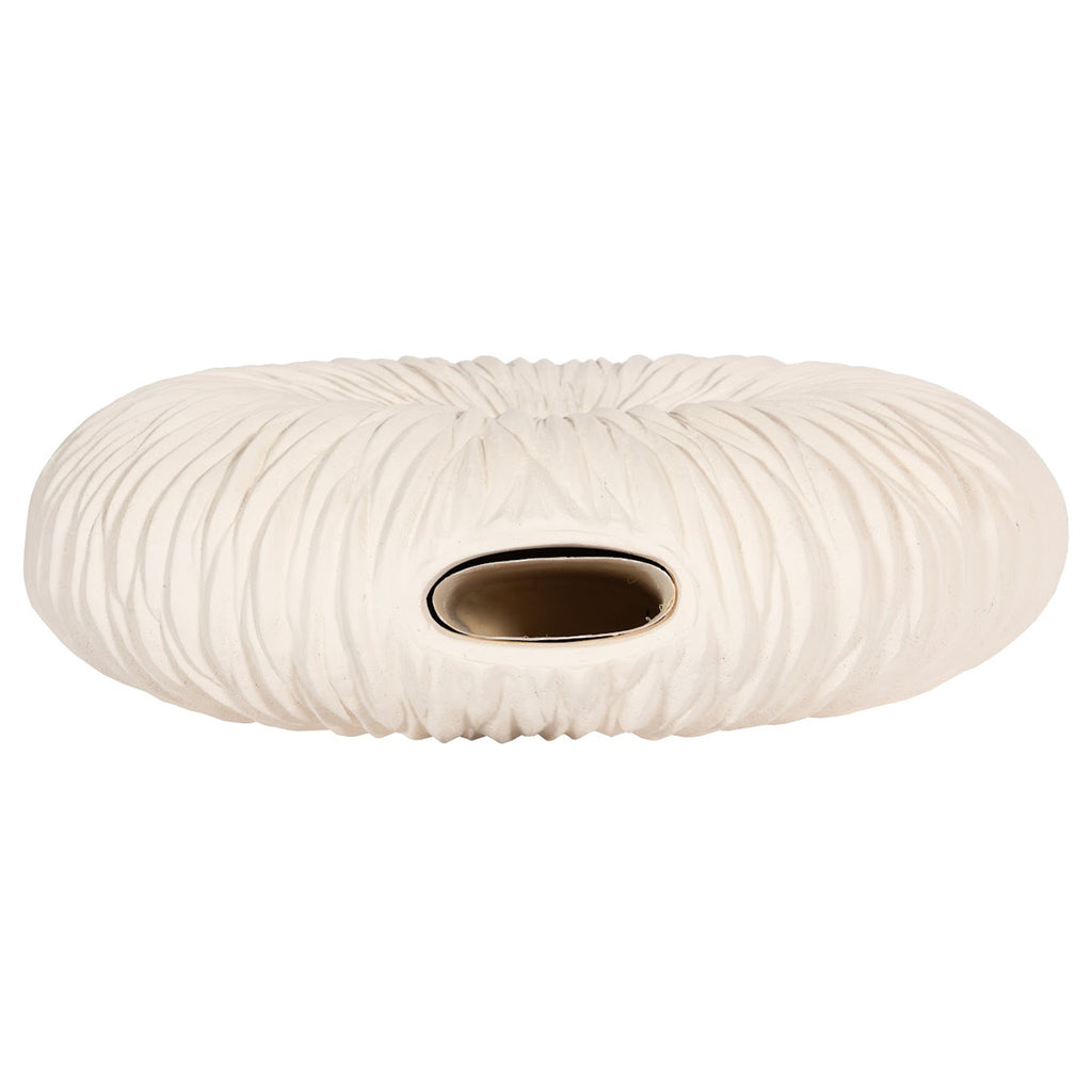 The design of the Waves Circle Vase was inspired by the rippling patterns the wind creates on sand. Each of the pieces in the Waves family of products combines organic inspiration with high technology. Because these vases are made of composite, they are long-lasting, lightweight, and durable. The fact that the off-white vase takes on the spirit of stone, it illustrates how contemporary materials can feel natural.